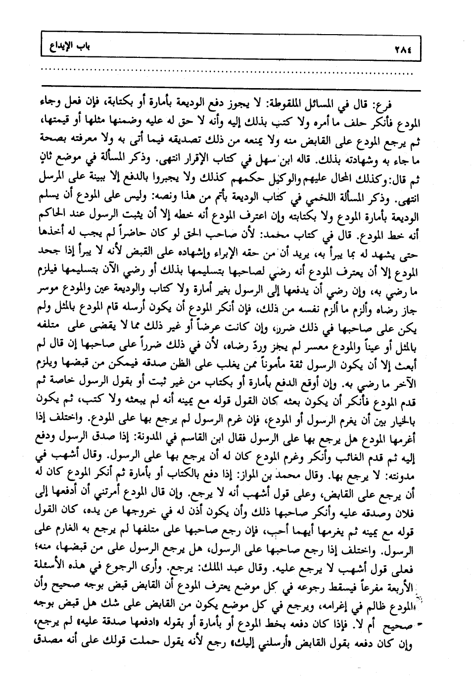 فرع: قال في المسائل الملقوطة: لا يجوز دفع الوديعة بأمارة أو بكتابة فإن فعل، وجاء المودع فأنكر حلف ما أمره ولا كتب بذلك إليه، وأنه لا حق له عليه وضمنها مثلها أو قيمتها، ثم يرجع المودع على القابض منه ولا يمنعه من ذلك تصديقه فيما أتى به ولا معرفته بصحة ما جاء به وشهادته بذلك قاله ابن سهل في كتاب الإقرار انتهى. وذكر المسألة في موضع ثان، ثم قال: وكذلك المحال عليهم والوكيل حكمهم كذلك، ولا يجبروا بالدفع إلا ببينة على المرسل انتهى. وذكر المسألة اللخمي في كتاب الوديعة بأتم من هذا ونصه، وليس على المودع أن يسلم الوديعة بأمارة المودع ولا بكتابته وإن اعترف المودع أنه خطه إلا أن يثبت الرسول عند الحاكم أنه خط المودع قال في كتاب محمد: لأن صاحب الحق لو كان حاضرا لم يجب له أخذها حتى يشهد له بما يبرأ به يريد أن من حقه الإبراء وإشهاده على القبض؛ لأنه لا يبرأ إذا جحد المودع إلا أن يعترف المودع أنه رضي لصاحبها بتسليمها بذلك أو رضي الآن بتسليمها، فيلزم ما رضي به، وإن رضي أن يدفعها إلى الرسول بغير إمارة ولا كتاب الوديعة عين والمودع موسر جاز رضاه، وألزم ما ألزم نفسه من ذلك، فإن أنكر المودع أن يكون أرسله قام المودع بالمثل، ولم يكن على صاحبها في ذلك ضرر وإن كانت عرضا أو غير ذلك مما لا يقضى على متلفه بالمثل أو عينا والمودع معسر لم يجز، ورد رضاه؛ لأن في ذلك ضررا على صاحبها إن قال: لم أبعث إلا أن يكون الرسول ثقة مأمونا ممن يغلب على الظن صدقه، فيمكن من قبضها، ويلزم الآخر ما رضي به وإن أوقع الدفع بأمارة أو بكتاب من غير ثبت أو بقول الرسول خاصة، ثم قدم المودع فأنكر أن يكون بعثه كان القول قوله مع يمينه أنه لم يبعثه ولا كتب، ثم يكون بالخيار بين أن يغرم الرسول أو المودع فإن غرم الرسول لم يرجع بها على المودع واختلف إذا أغرمها المودع هل يرجع بها على الرسول؟ فقال ابن القاسم في المدونة: إذا صدق الرسول ودفع إليه، ثم قدم الغائب وأنكر وغرم المودع كان له أن يرجع بها على الرسول وقال أشهب في مدونته: لا يرجع بها وقال محمد بن المواز إذا دفع بالكتاب أو بأمارة، ثم أنكر المودع كان له أن يرجع على القابض، وعلى قول أشهب أنه لا يرجع وإن قال المودع: أمرتني أن أدفعها إلى فلان وصدقه عليه، وأنكر صاحبها ذلك وأن يكون أذن له في خروجها عن يده كان القول قوله مع يمينه، ثم يغرمها أيهما أحب فإن رجع صاحبها على متلفها لم يرجع به الغارم على الرسول واختلف إذا رجع صاحبها على الرسول هل يرجع الرسول على من قبضها منه فعلى قول أشهب لا يرجع عليه، وقال عبد الملك يرجع، وأرى الرجوع في هذه الأسئلة الأربعة مفرعا، فيسقط رجوعه في كل موضع يعترف المودع أن القابض قبض بوجه صحيح، وأن المودع ظالم في إغرامه، ويرجع في كل موضع يكون من القابض على شك هل قبض بوجه صحيح أم لا فإذا كان دفعه بخط المودع أو بأمارة أو بقوله: "ادفعها صدقة عليه" لم يرجع، وإن كان دفعه بقول القابض أرسلني إليك رجع؛ لأنه يقول حملت قولك على أنه مصدق