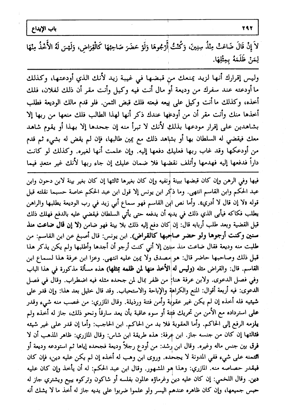 لا إن قال ضاعت منذ سنين، وكنت أرجوها ولو حضر صاحبها كالقراض، وليس له الأخذ منها لمن ظلمه بمثلها.