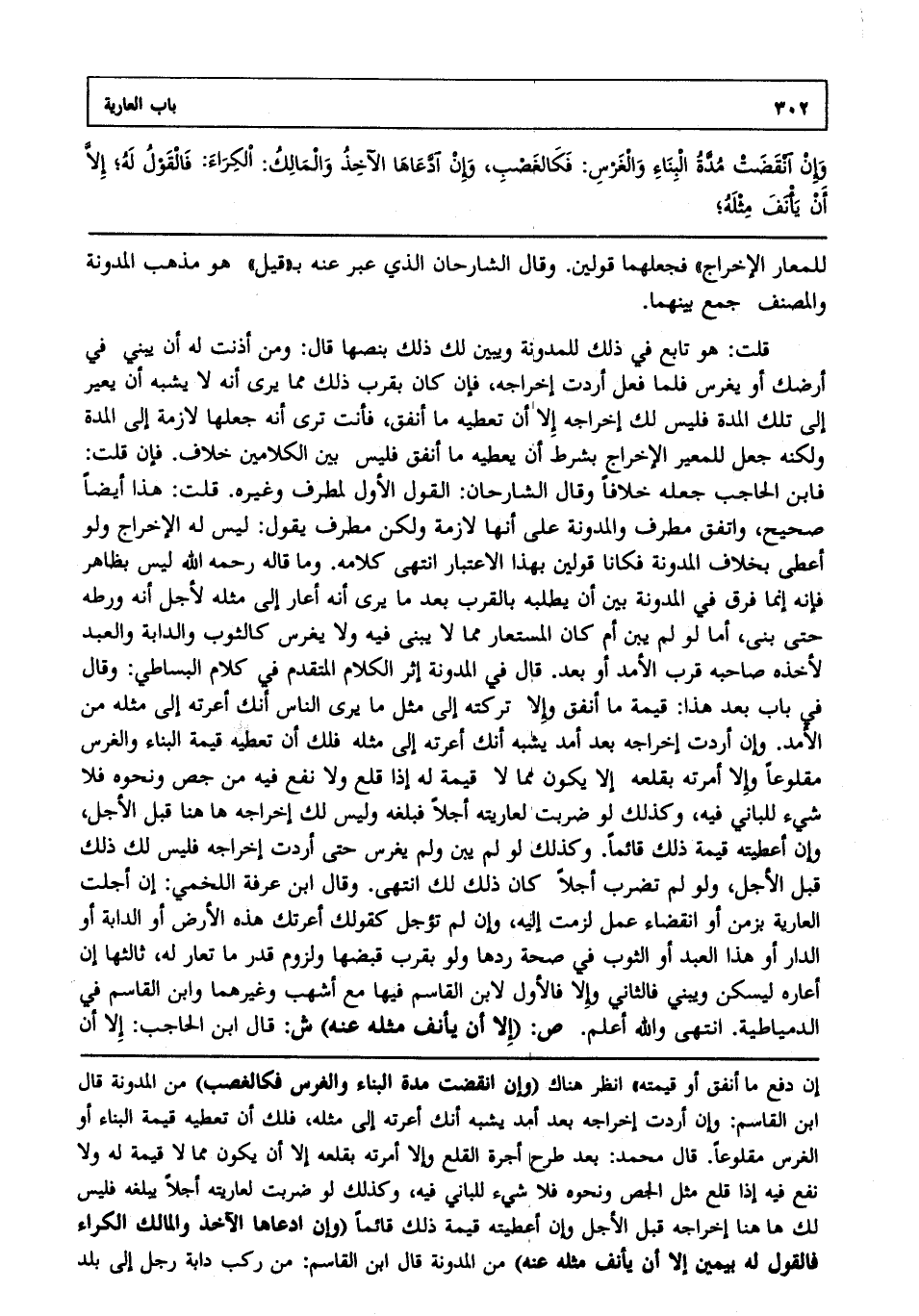قلت: هو تابع في ذلك للمدونة، ويبين لك ذلك بنصها قال: ومن أذنت له أن يبني في أرضك أو يغرس فلما فعل أردت إخراجه فإن كان بقرب ذلك مما يرى أنه لا يشبه أن يعير إلى تلك المدة، فليس لك إخراجه إلا أن تعطيه ما أنفق فأنت ترى أنه جعلها لازمة إلى المدة، ولكنه جعل للمعير الإخراج بشرط أن يعطيه ما أنفق، فليس بين الكلامين خلاف. (فإن قلت): فابن الحاجب جعله خلافا وقال الشارحان: القول الأول لمطرف وغيره قلت: هذا أيضا صحيح، واتفق مطرف والمدونة على أنها لازمة ولكن مطرف يقول: ليس له الإخراج، ولو أعطى بخلاف المدونة فكانا قولين بهذا الاعتبار انتهى كلامه. وما قاله رحمه الله ليس بظاهر، فإنه إنما فرق في المدونة بين أن يطلبه بالقرب بعد ما يرى أنه أعار إلى مثله لأجل أنه ورطه حتى بنى أما لو لم يبن أو كان المستعار مما لا يبنى فيه، ولا يغرس كالثوب والدابة والعبد لأخذه صاحبه قرب الأمد أو بعد قال في المدونة: إثر الكلام المتقدم في كلام البساطي وقال في باب بعد هذا قيمة ما أنفق وإلا تركته إلى مثل ما يرى الناس أنك أعرته إلى مثله من الأمد وإن أردت إخراجه بعد أمد يشبه أنك أعرته إلى مثله فلك أن تعطيه قيمة البناء والغرس مقلوعا، وإلا أمرته بقلعه إلا أن يكون مما لا قيمة له إذا قلع، ولا نفع فيه من جص ونحوه، فلا شيء للباني فيه، وكذلك لو ضربت لعاريته أجلا فبلغه، وليس لك إخراجه ههنا قبل الأجل، وإن أعطيته قيمة ذلك قائما، وكذلك لو لم يبن، ولم يغرس حتى أردت إخراجه، فليس لك ذلك قبل الأجل، ولو لم تضرب أجلا كان ذلك لك انتهى. وقال ابن عرفة اللخمي إن أجلت العارية بزمن أو انقضاء عمل لزمت إليه، وإن لم تؤجل كقولك أعرتك هذه الأرض أو الدابة أو الدار أو هذا العبد أو الثوب في صحة ردها، ولو بقرب قبضها ولزوم قدر ما تعار له ثالثها إن أعاره ليسكن، ويبني، فالثاني وإلا، فالأول لابن القاسم فيها مع أشهب وغيرهما وابن القاسم في الدمياطية انتهى والله أعلم ص: (إلا أن يأنف مثله عنه) ش: قال ابن الحاجب إلا أن