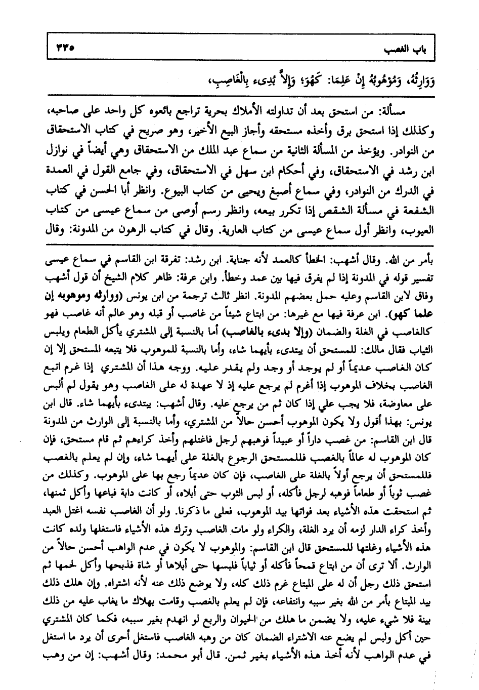 مسألة: من استحق بعد أن تداولته الأملاك بحرية تراجع بائعوه كل واحد على صاحبه وكذلك إذا استحق برق وأخذه مستحقه وأجاز البيع الأخير وهو صريح في كتاب الاستحقاق من النوادر ويؤخذ من المسألة الثانية من سماع عبد الملك من الاستحقاق وهي أيضا في نوازل ابن رشد في الاستحقاق وفي أحكام ابن سهل في الاستحقاق وفي جامع القول في العمدة في الدرك من النوادر وفي سماع أصبغ ويحيى من كتاب البيوع. وانظر أبا الحسن في كتاب الشفعة في مسألة الشقص إذا تكرر بيعه وانظر رسم أوصى من سماع عيسى من كتاب العيوب وانظر أول سماع عيسى من كتاب العارية وقال في كتاب الرهون من المدونة: وقال