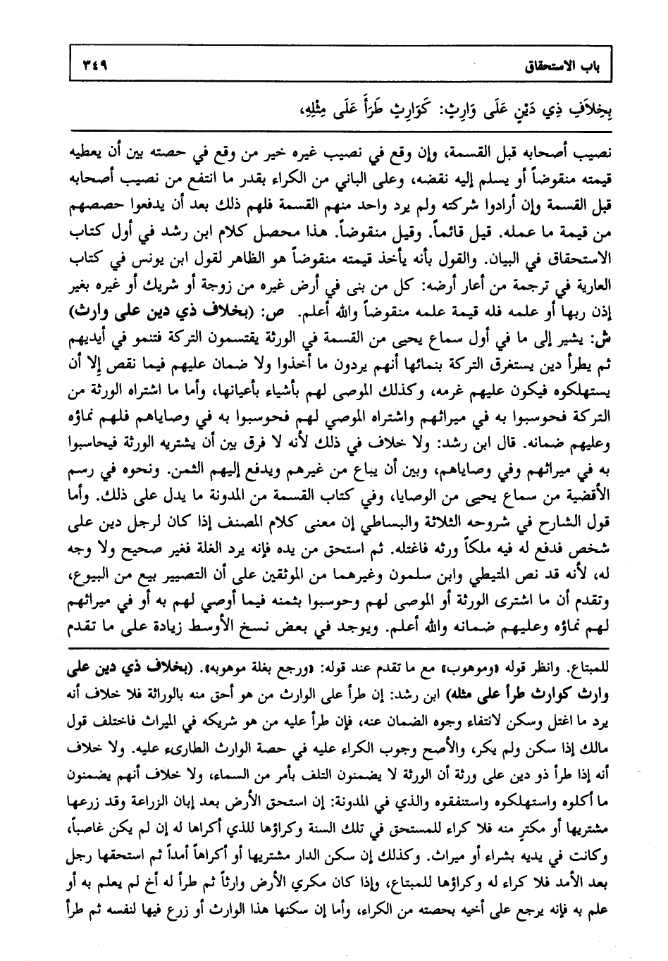 بخلاف ذي دين على وارث: كوارث طرأ على مثله،
