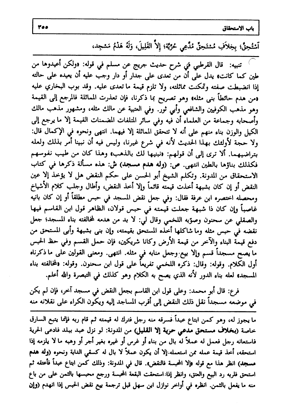 استحق، بخلاف مستحق مدعي حرية، إلا القليل، وله هدم مسجد،