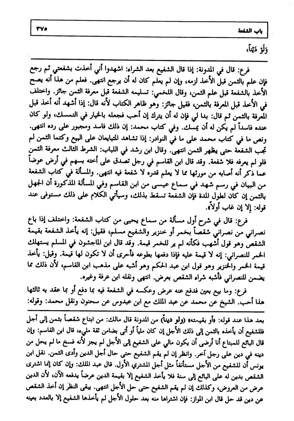 فرع: وما بيع بعين فدفع عنه عرض وعكسه في الشفعة فيه بما دفع أو بما عقد به ثالثها هذا أحب. الشيخ عن محمد عن عبد الملك مع ابن عبدوس عن سحنون ونقل محمد: وقوله: