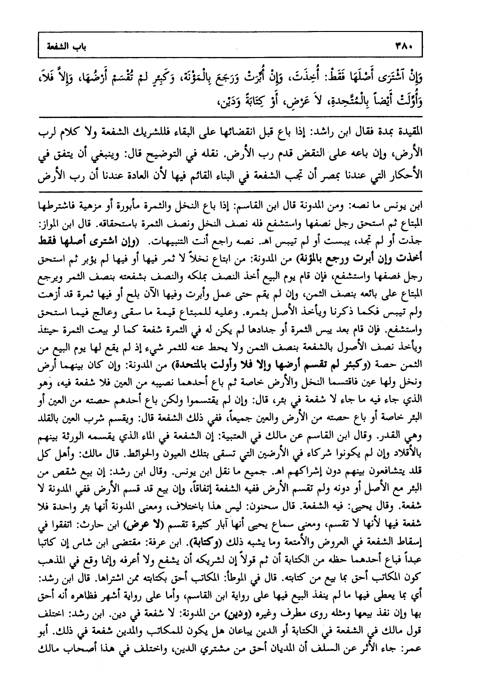 وإن اشترى أصلها فقط: أخذت، وإن أبرت ورجع بالمؤنة، وكبئر لم تقسم أرضها وإلا فلا، وأولت أيضا بالمتحدة، لا عرض أو كتابة ودين،