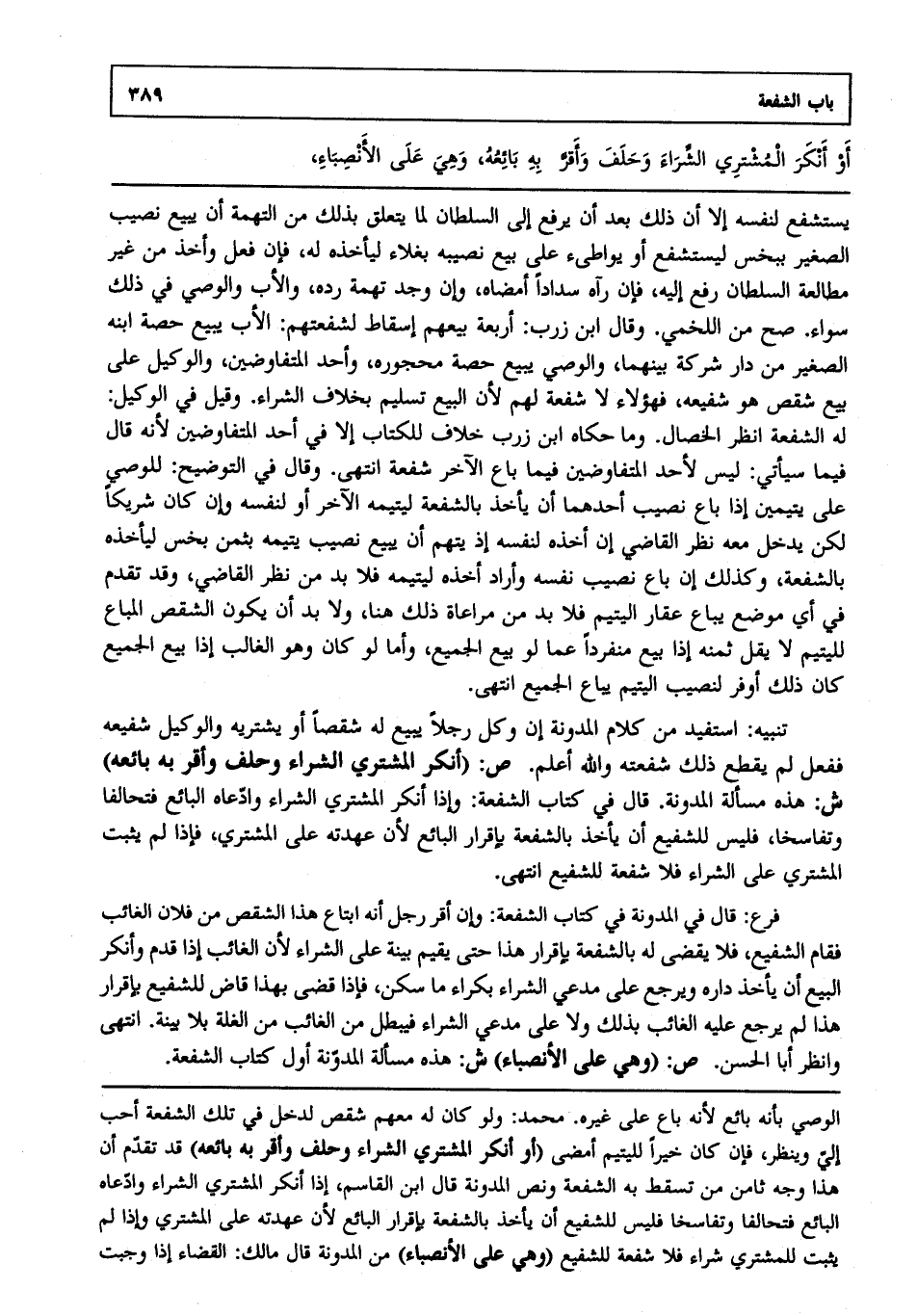تنبيه: استفيد من كلام المدونة إن وكل رجلا يبيع له شقصا أو يشتريه والوكيل شفيعه ففعل لم يقطع ذلك شفعته، والله أعلم. ص: (أو أنكر المشتري الشراء وحلف وأقر به بائعه) ش: هذه مسألة المدونة، قال في كتاب الشفعة: وإذا أنكر المشتري الشراء وادعاه البائع فتحالفا وتفاسخا فليس للشفيع أن يأخذ بالشفعة بإقرار البائع؛ لأن عهدته على المشتري فإذا لم يثبت المشتري على الشراء فلا شفعة للشفيع، انتهى.