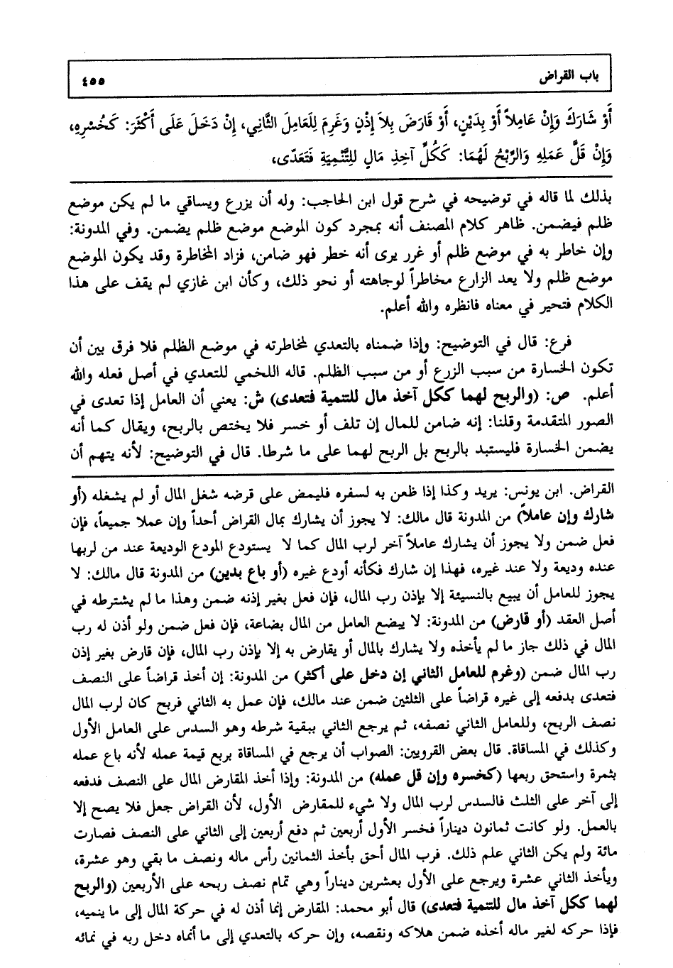 أو شارك إن عاملا أو بدين، أو قارض بلا إذن وغرم للعامل الثاني إن دخل على أكثر كخسره إن قل عمله والربح لهما: ككل آخذ مال للتنمية فتعدى،
