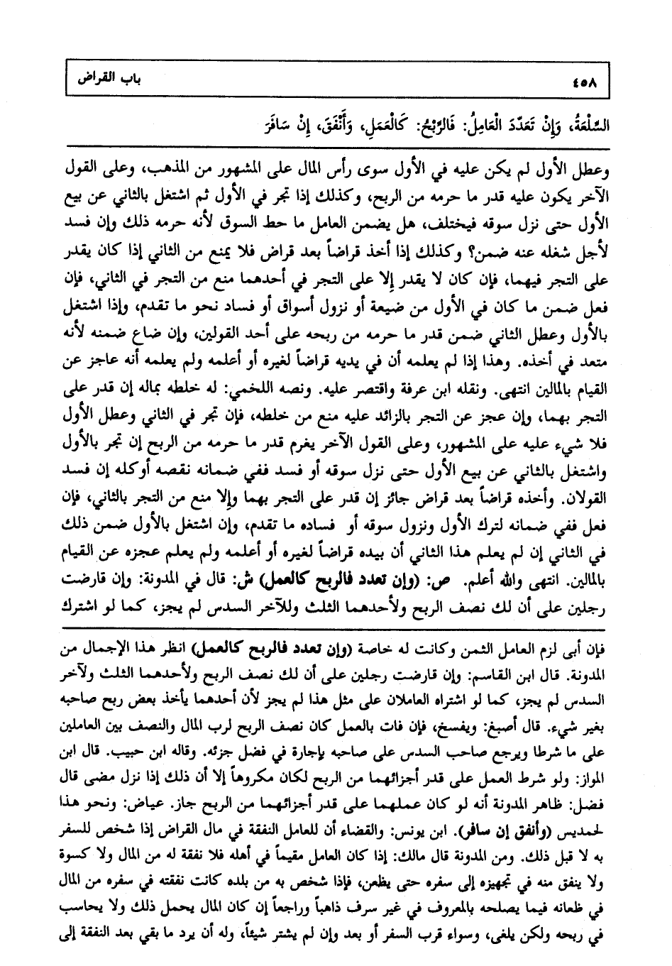 السلعة وإن تعدد العامل: فالربح: كالعمل، وأنفق، إن سافر