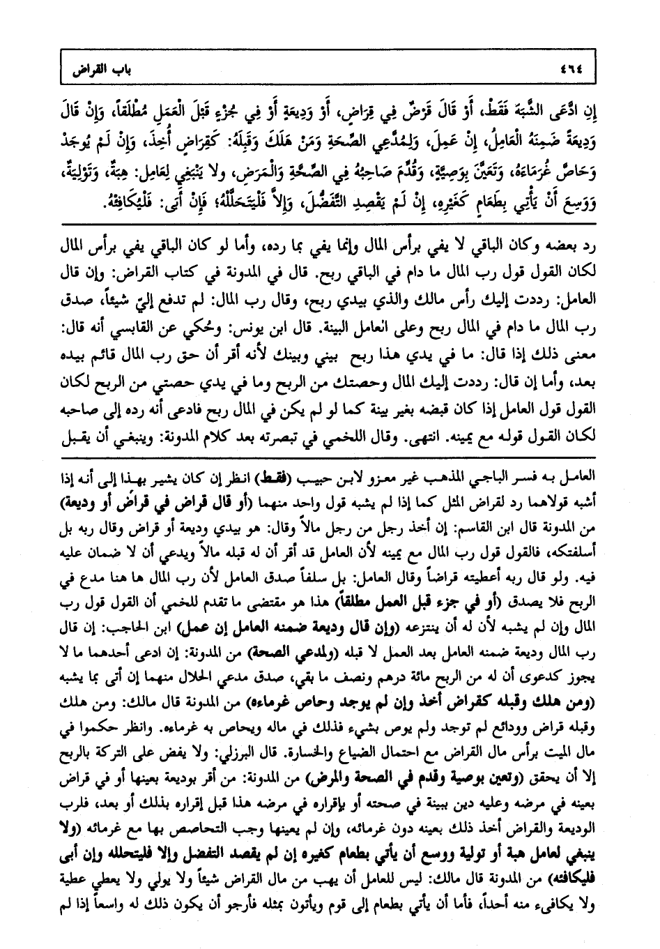 إن ادعى الشبه فقط، أو قال قرض في قراض، أو وديعة أو في جزء قبل العمل مطلقا، وإن قال وديعة ضمنه العامل إن عمل ولمدعي الصحة ومن هلك وقبله كقراض أخذ وإن لم يوجد وحاص غرماءه وتعين بوصية وقدم صاحبه في الصحة والمرض ولا ينبغي لعامل هبة وتولية ووسع أن يأتي بطعام كغيره إن لم يقصد التفضل وإلا فليتحلله، فإن أبى: فليكافئه.