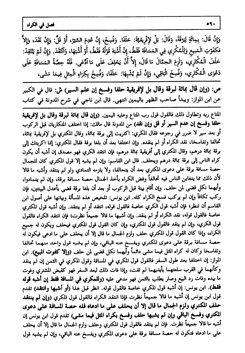 ص: (وإن قال: بمائة لبرقة، وقال بل لإفريقية حلفا وفسخ إن علم السير) ش: قال في الكبير عن ابن المواز: ويبدأ صاحب الظهر باليمين انتهى. قال ابن ناجي في شرح المدونة في كتاب