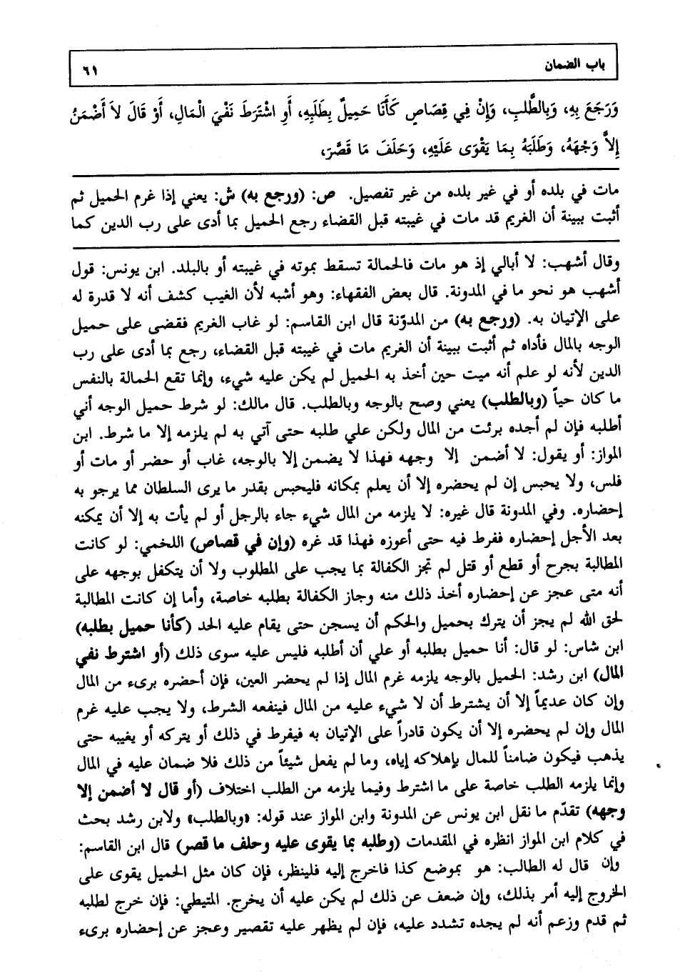 ورجع به، وبالطلب وإن في قصاص كأنا حميل بطلبه، أو اشترط نفي المال، أو قال لا أضمن إلا وجهه، وطلبه بما يقوى عليه، وحلف ما قصر،