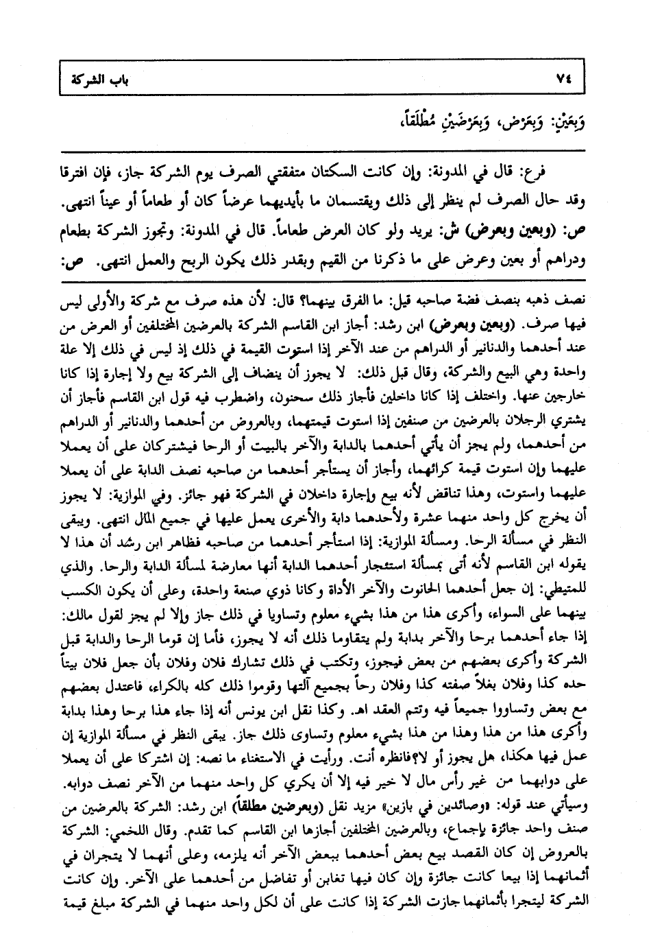 فرع: قال في المدونة: وإن كانت السكتان متفقتي الصرف يوم الشركة جاز فإن افترقا، وقد حال الصرف لم ينظر إلى ذلك ويقتسمان ما بأيديهما عرضا كان، أو طعاما، أو عينا انتهى. ص: (وبعين وبعرض) ش: يريد: ولو كان العرض طعاما. قال في المدونة: وتجوز الشركة بطعام ودراهم، أو بعين وعرض على ما ذكرنا من القيم، وبقدر ذلك يكون الربح والعمل انتهى. ص: