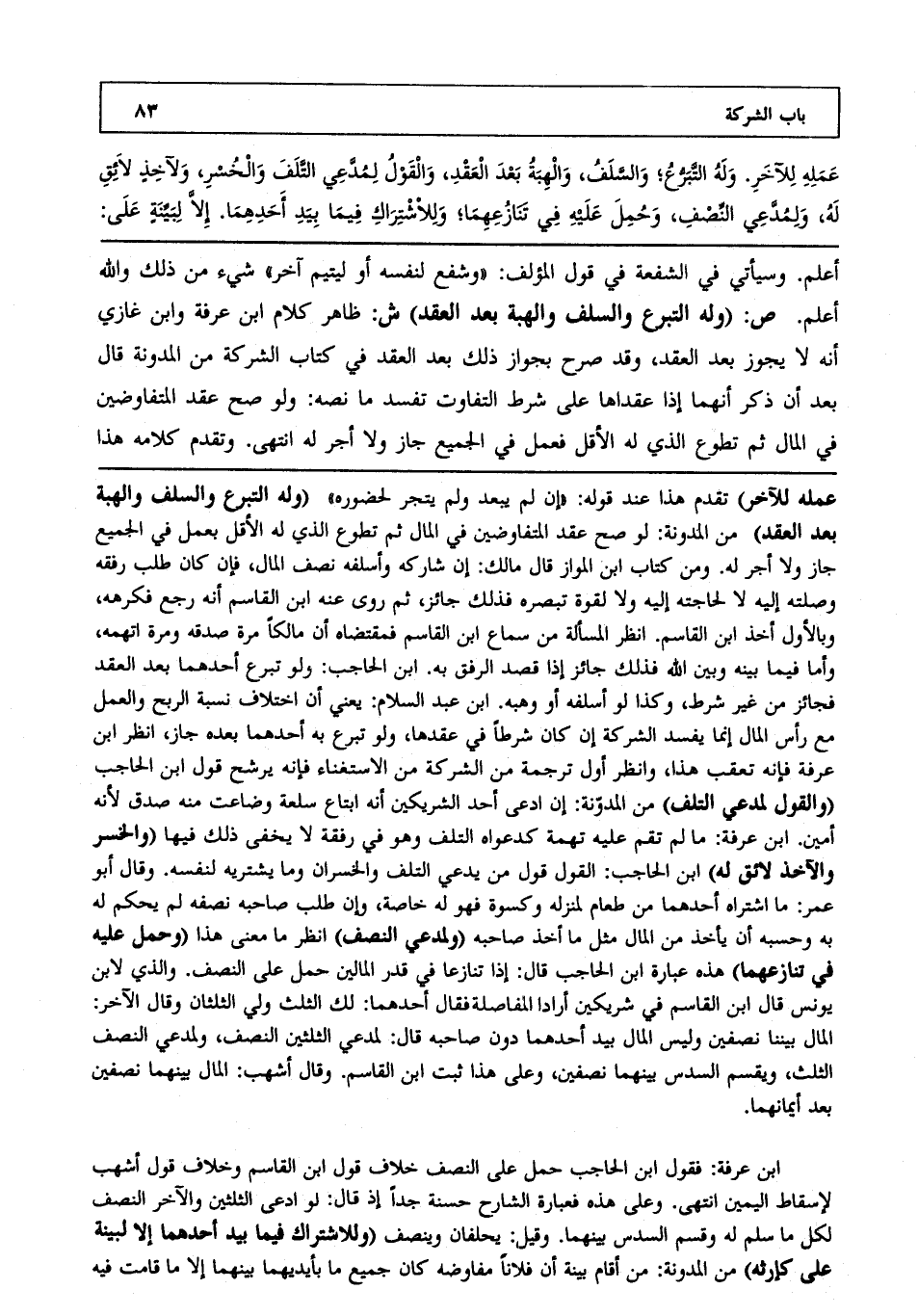 أعلم. وسيأتي في الشفعة في قول المؤلف وشفع لنفسه، أو ليتيم آخر" شيء من ذلك، والله أعلم. ص (وله التبرع والسلف والهبة بعد العقد) ش: ظاهر كلام ابن عرفة وابن غازي أنه لا يجوز بعد العقد، وقد صرح بجواز ذلك بعد العقد في كتاب الشركة من المدونة قال بعد أن ذكر أنهما إذا عقداها على شرط التفاوت تفسد ما نصه ولو صح عقد المتفاوضين في المال ثم تطوع الذي له الأقل فعمل في الجميع جاز، ولا أجر له انتهى. وتقدم كلامه هذا