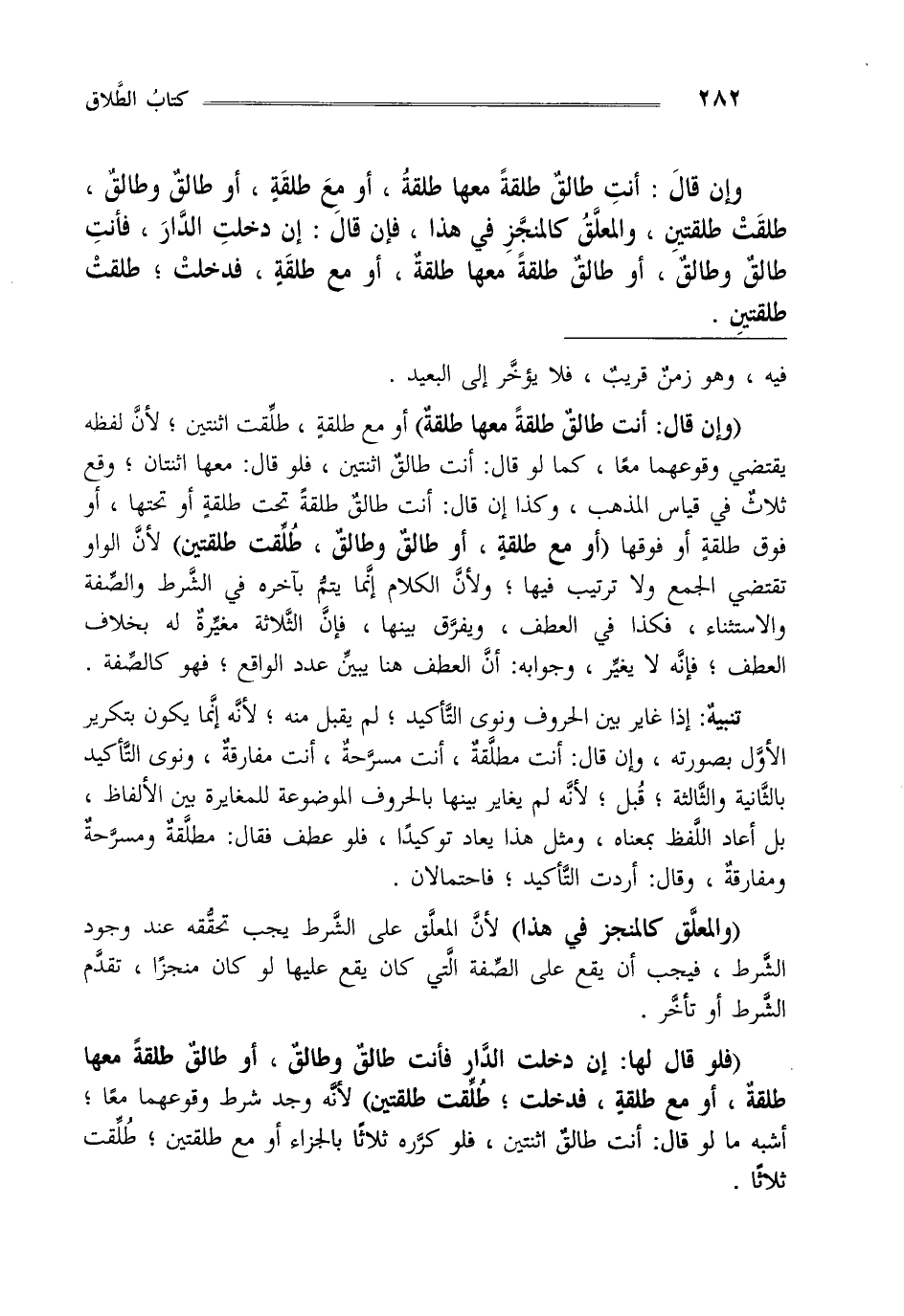 وإن قال أنت طالق طلقة معها طلقة أو مع طلقة أو طالق وطالق طلقت طلقتين والمعلق كالمنجز في هذا فإن قال إن دخلت الدار فأنت طالق وطالق أو طالق طلقة معها طلقة أو مع طلقة فدخلت طلقت طلقتين.