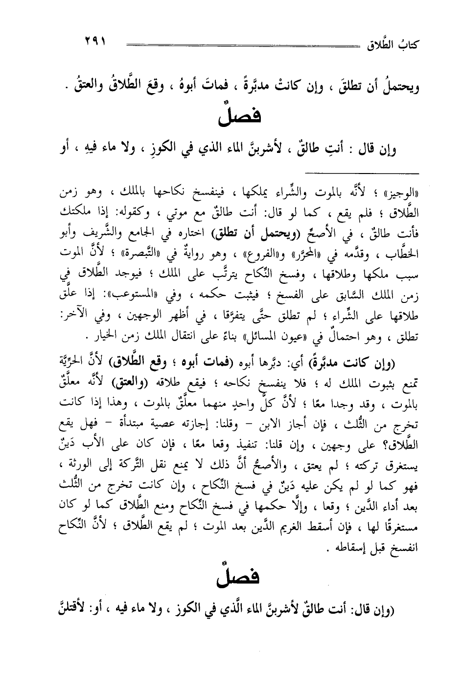 "الوجيز" لأنه بالموت والشراء يملكها فينفسخ نكاحها بالملك وهو زمن الطلاق فلم يقع كما لو قال أنت طالق مع موتي وكقوله إذا ملكتك فأنت طالق في الأصح "ويحتمل أن تطلق" اختاره في "الجامع" والشريف وأبو الخطاب وقدمه في "المحرر" و "الفروع" وهو رواية في "التبصرة" لأن الموت سبب ملكها وطلاقها وفسخ النكاح يترتب على الملك فيوجد الطلاق في زمن الملك السابق على الفسخ فيثبت حكمه وفي "المستوعب" إذا علق طلاقها على الشراء لم تطلق حتى يتفرقا في أظهر الوجهين وفي الآخر تطلق وهو احتمال في "عيون المسائل" بناء على انتقال الملك زمن الخيار.