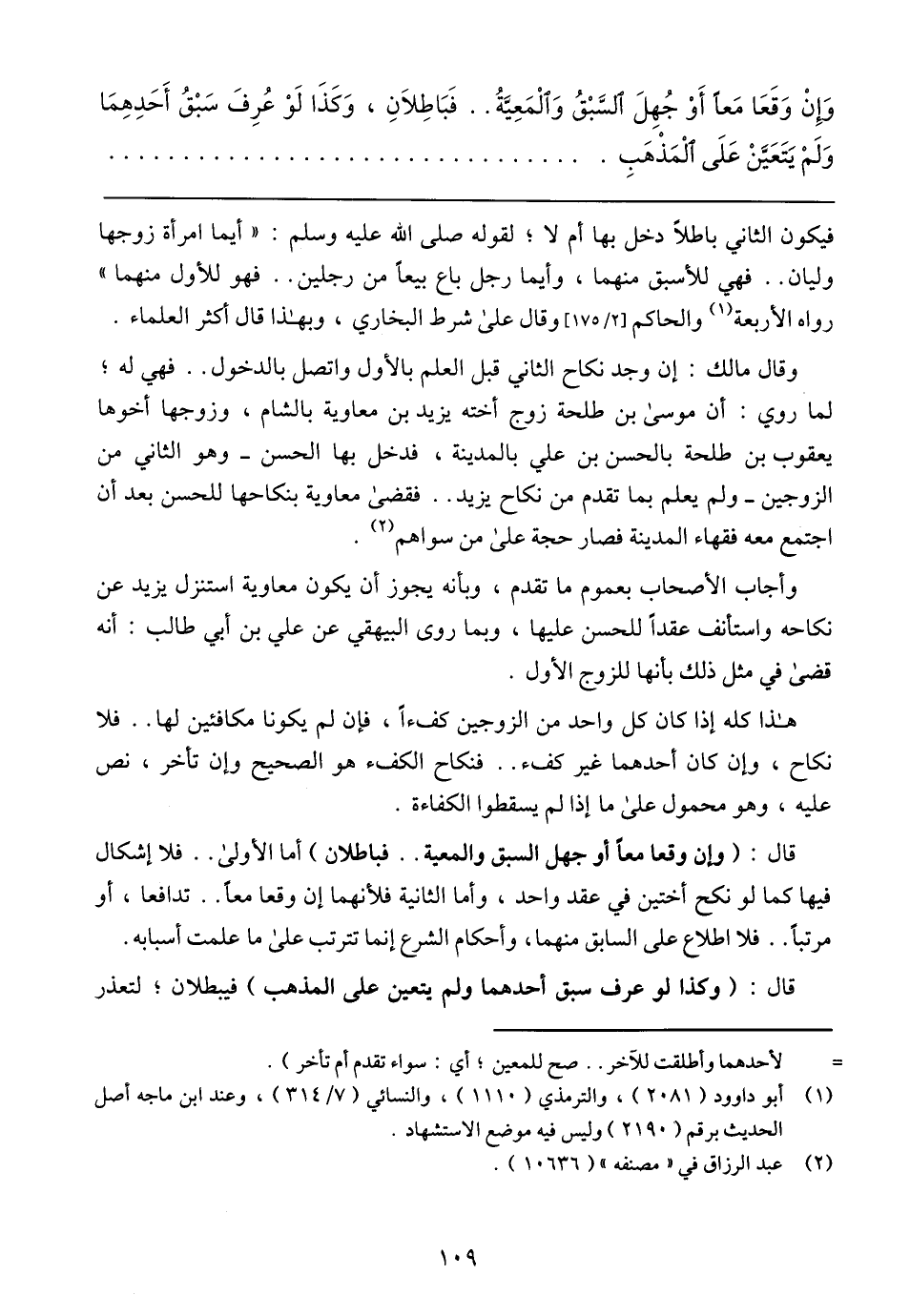 وأجاب الأصحاب بعموم ما تقدم، وبأنه يجوز أن يكون معاوية استنزل يزيد عن نكاحه واستأنف عقدًا للحسن عليها، وبما روى البيهقي عن علي بن أبي طالب: أنه قضى في مثل ذلك بأنها للزوج الأول.
