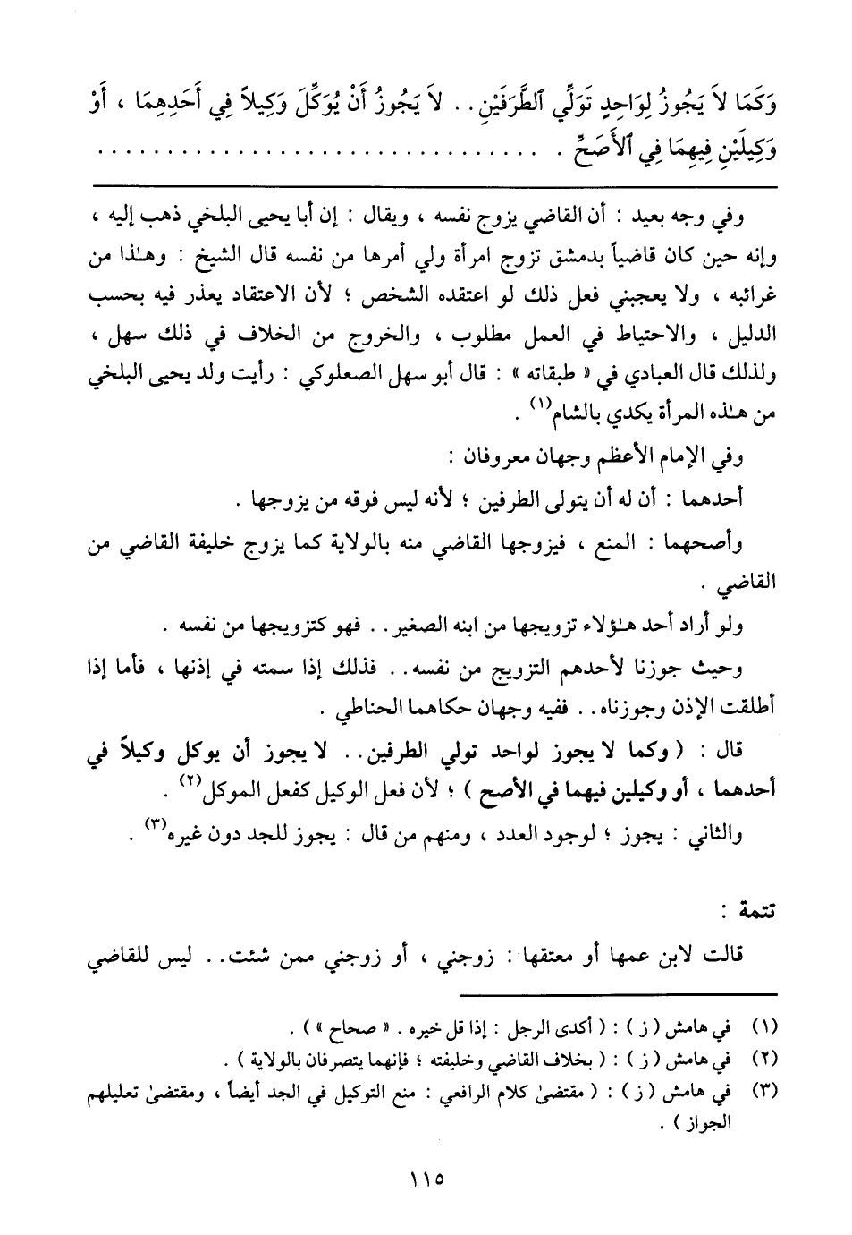 وفي وجه بعيد: أن القاضي يزوج نفسه، ويقال: إن أبا يحيي البلخي ذهب إليه، وإنه حين كان قاضيًا بدمشق تزوج امرأة ولي أمرها من نفسه قال الشيخ: وهذا من غرائبه، ولا يعجبني فعل ذلك لو اعتقده الشخص؛ لأن الاعتقاد يعذر فيه بحسب الدليل، والاحتياط في العمل مطلوب، والخروج من الخلاف في ذلك سهل، ولذلك قال العبادي في (طبقاته): قال أبو سهل الصعلوكي: رأيت ولد يحيي البلخي من هذه المرأة يكدي بالشام.