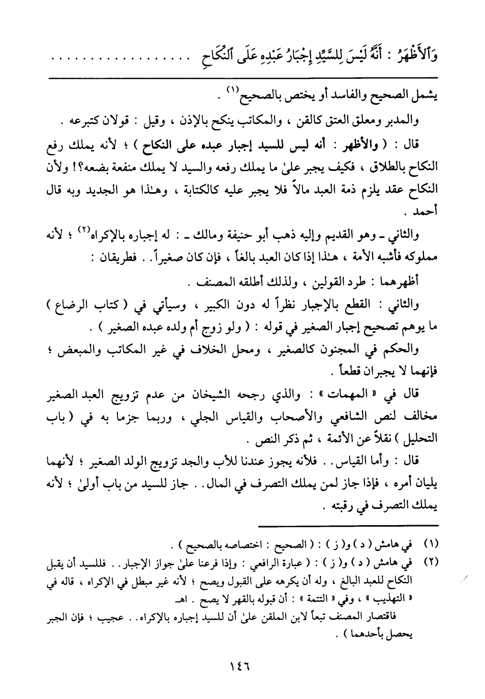 والثاني: القطع بالإجبار نظرًا له دون الكبير، وسيأتي في (كتاب الرضاع) ما يوهم تصحيح إجبار الصغير في قوله: (ولو زوج أم ولده عبده الصغير)