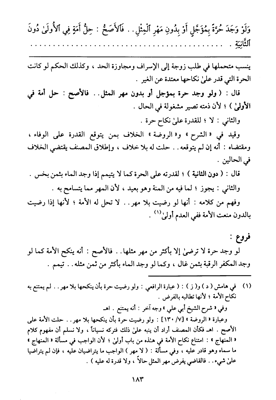 لو وجد حرة لا ترضى إلا بأكثر من مهر مثلها .. فالأصح: أنه ينكح الأمة كما لو وجد المكفر الرقبة بثمن غال، وكما لو وجد الماء بأكثر من ثمن مثله .. تيمم.