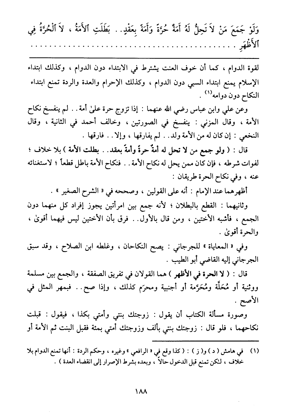 وَلَوْ جَمَعَ مَنْ لاَ تَحِلُّ لَهُ أَمَةٌ حُرَّةً وَأَمَةً بِعَقْدٍ .. بَطَلَتِ الأَمَةُ، لاَ الْحُرَّةُ فِي الأَظْهَرِ