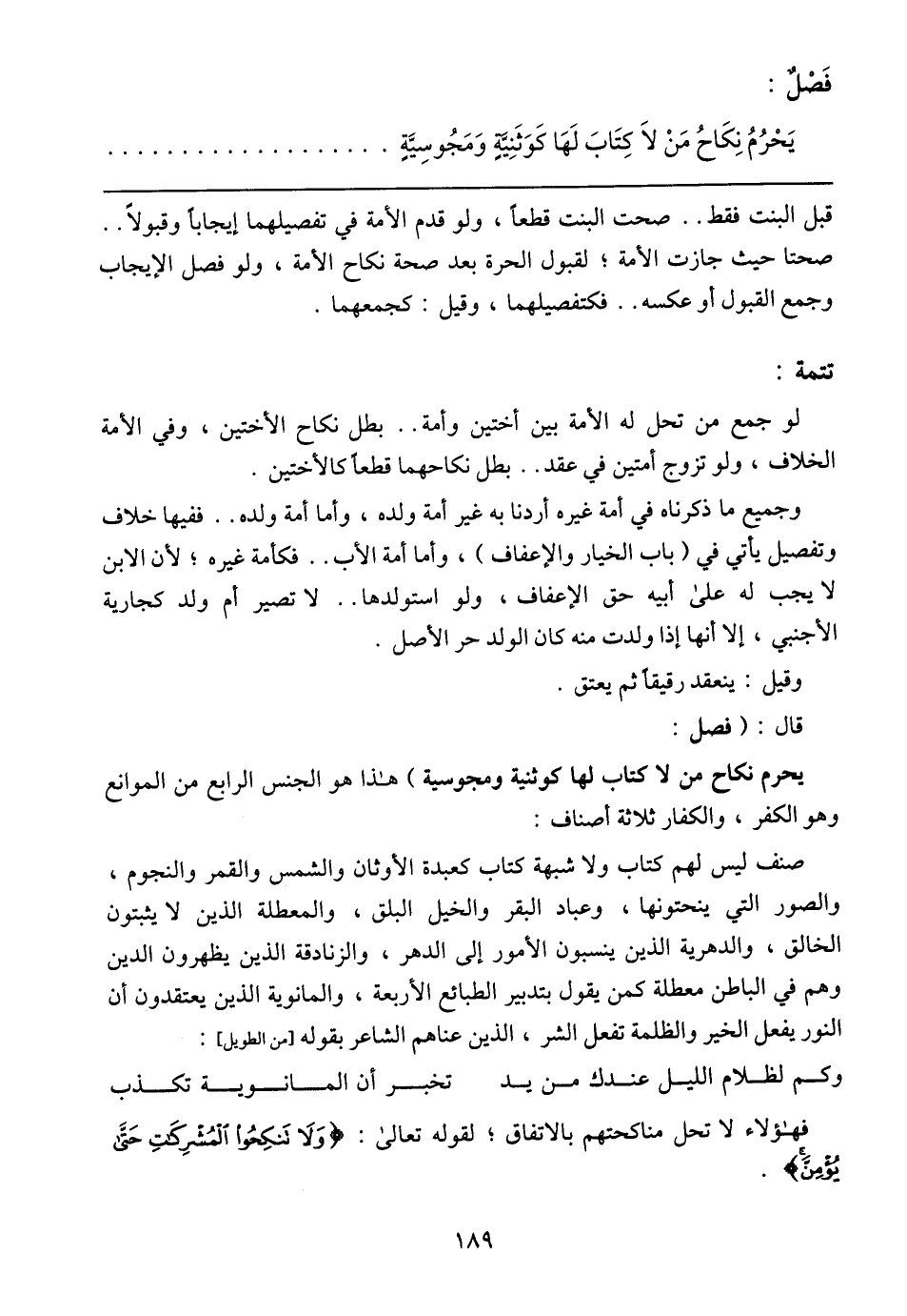 يَحْرُمُ نِكَاحُ مَنْ لاَ كِتَابَ لَهَا كَوَثَنِيَةٍ وَمَجُوسِيَّةٍ