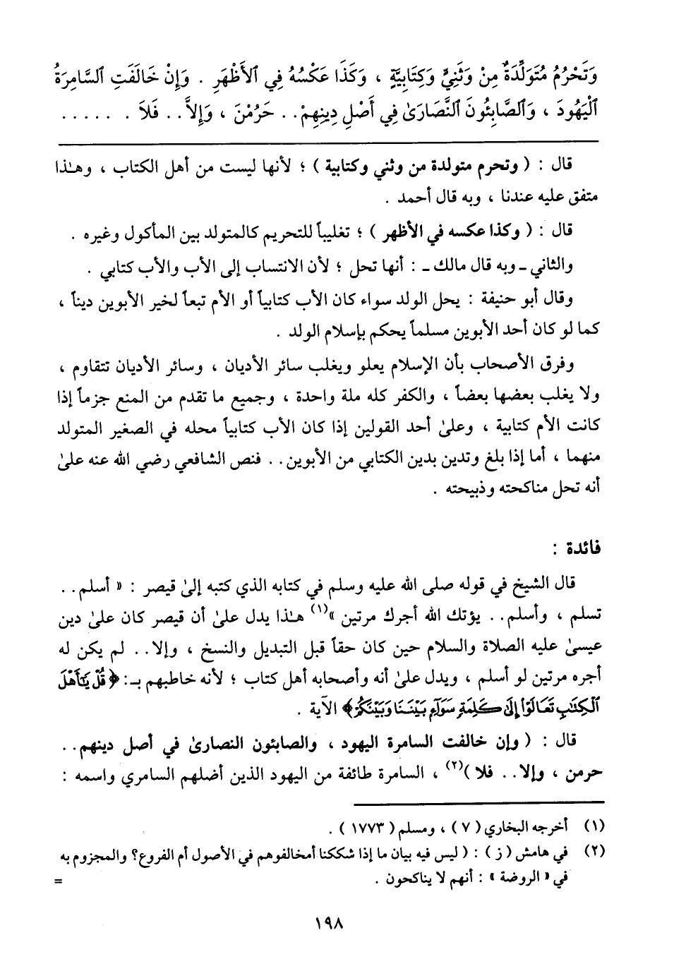قال: (وإن خالفت السامرة اليهود، والصابئون النصارى في أصل دينهم .. حرمن، وإلا .. فلا)، السامرة طائفة من اليهود الذين أضلهم السامري واسمه: