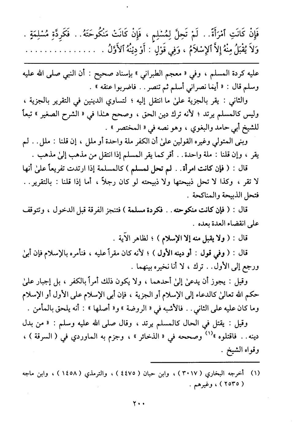 عليه كردة المسلم، وفي (معجم الطبراني) بإسناد صحيح: أن النبي صلى الله عليه وسلم قال: (أيما نصراني أسلم ثم تنصر .. فاضربوا عنقه).