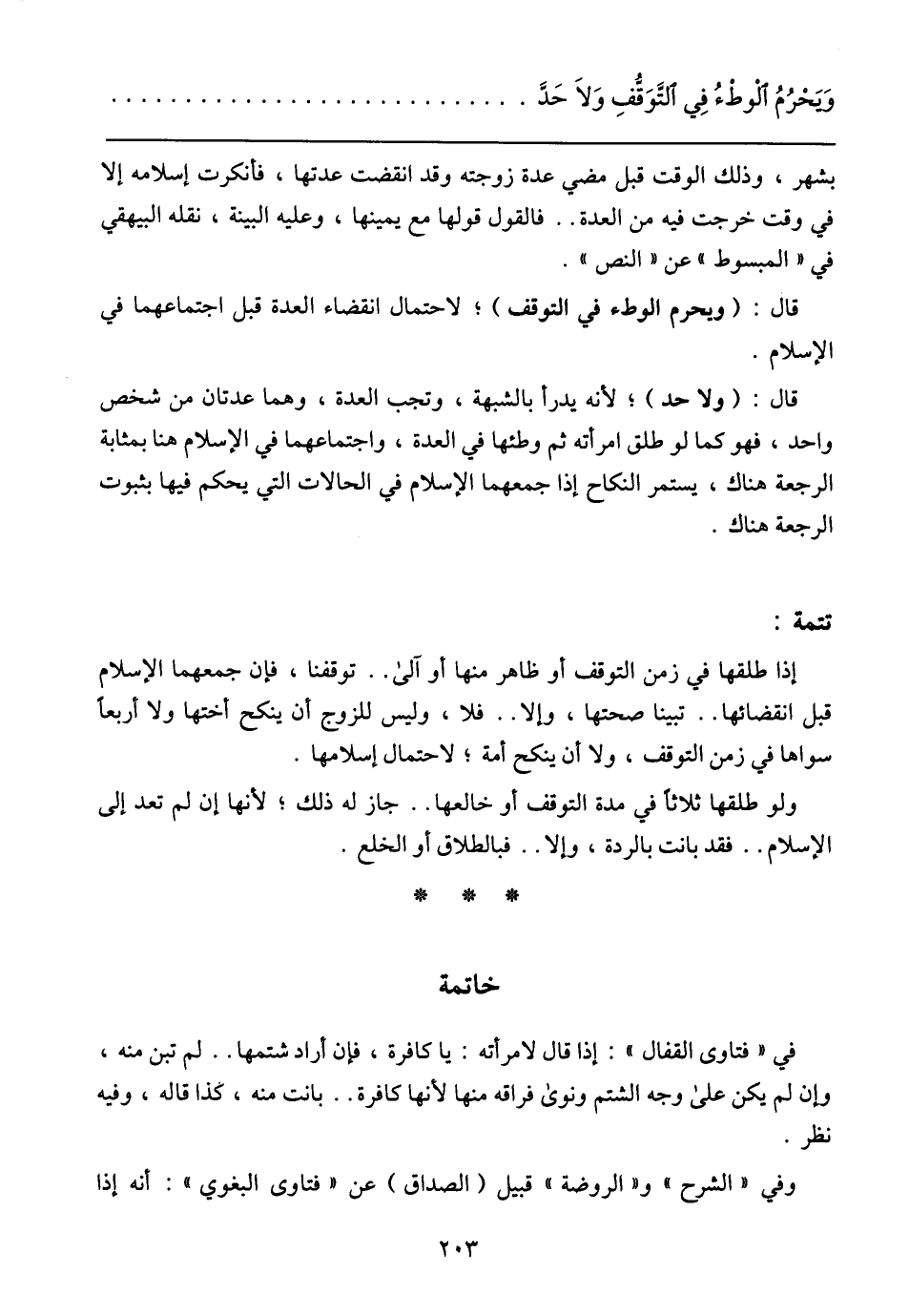 قال: (ويحرم الوطء في التوقف)؛ لاحتمال انقضاء العدة قبل اجتماعهما في الإسلام.