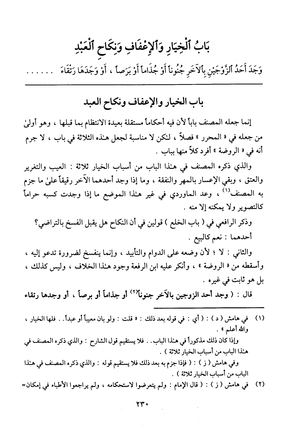 بَابُ الْخِيَارِ وَالإِعْفَافِ وَنِكَاحِ الْعَبْدِ
