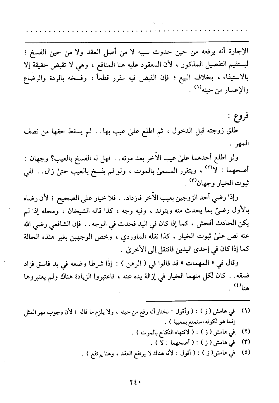 الإجارة أنه يرفعه من حين حدوث سببه لا من أصل العقد ولا من حين الفسخ؛ ليستقيم التفصيل المذكور، لأن المعقود عليه هنا المنافع، وهي لا تقبض حقيقة إلا بالاستيفاء، بخلاف البيع؛ فإن القبض فيه مقرر قطعًا، وفسخه بالردة والرضاع والإعسار من حينه.