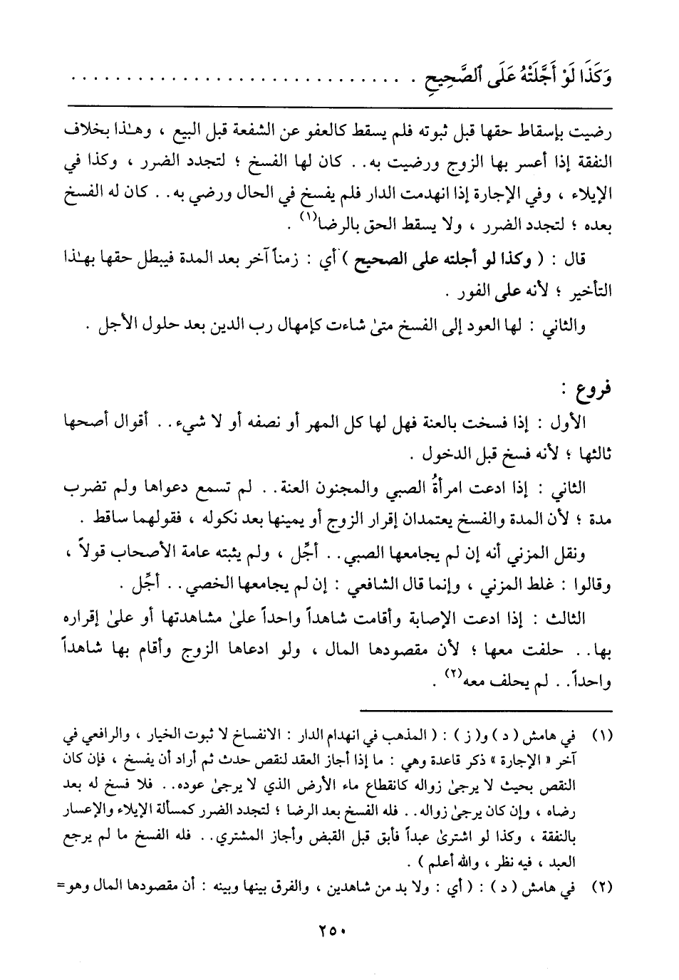 والثاني: لها العود إلى الفسخ متى شاءت كإمهال رب الدين بعد حلول الأجل.