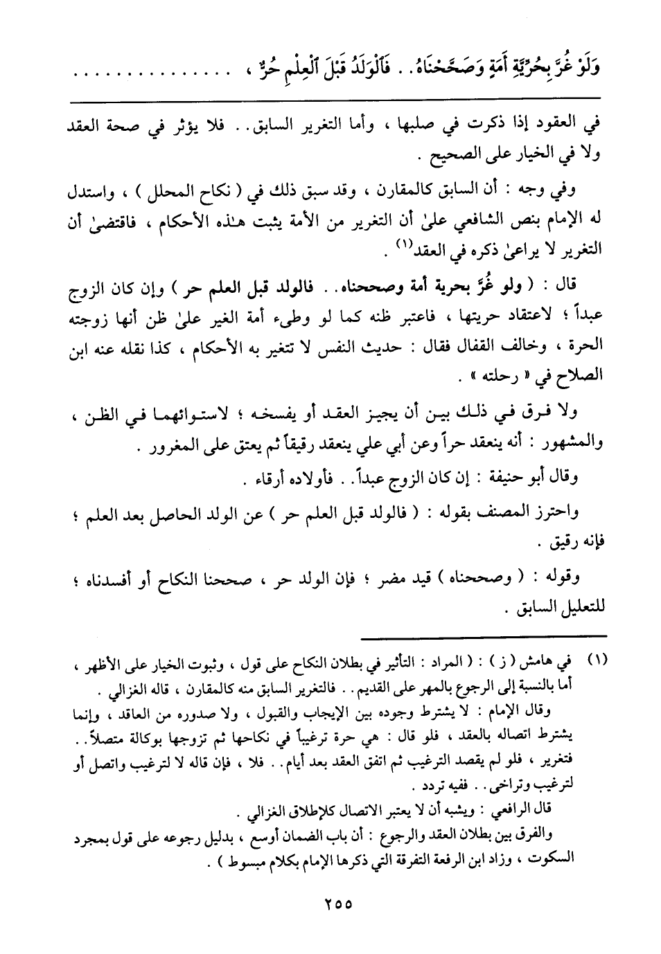 وقوله: (وصححناه) قيد مضر؛ فإن الولد حر، صححنا النكاح أو أفسدناه؛ للتعليل السابق.