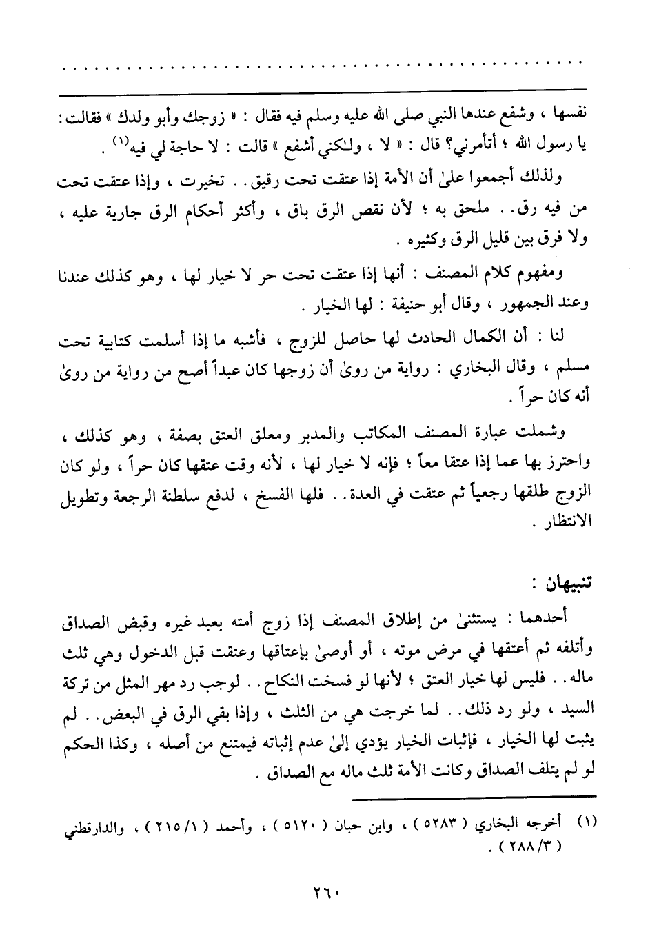 ولذلك أجمعوا على أن الأمة إذا عتقت تحت رقيق .. تخيرت، وإذا عتقت تحت من فيه رق .. ملحق به؛ لأن نقص الرق باق، وأكثر أحكام الرق جارية عليه، ولا فرق بين قليل الرق وكثيره.