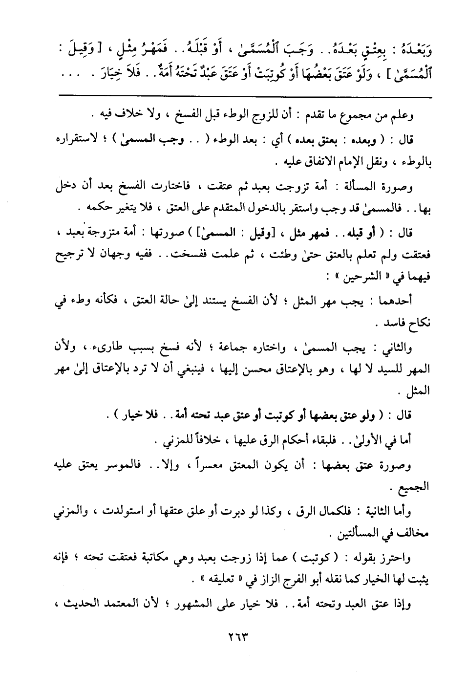 وَبَعْدَهُ: بِعِتْقٍ بَعْدَهُ .. وَجَبَ الْمُسَمَّى، أَوْ قَبْلَهُ .. فَمَهْرُ مِثْلٍ، (وَقِيلَ: الْمُسَمَّى)، وَلَوْ عَتَقَ بَعْضُهَا أَوْ كُوتِبَتْ أَوْ عَتَقَ عَبْدٌ تَحْتَهُ أَمَةً .. فَلاَ خِيَارَ