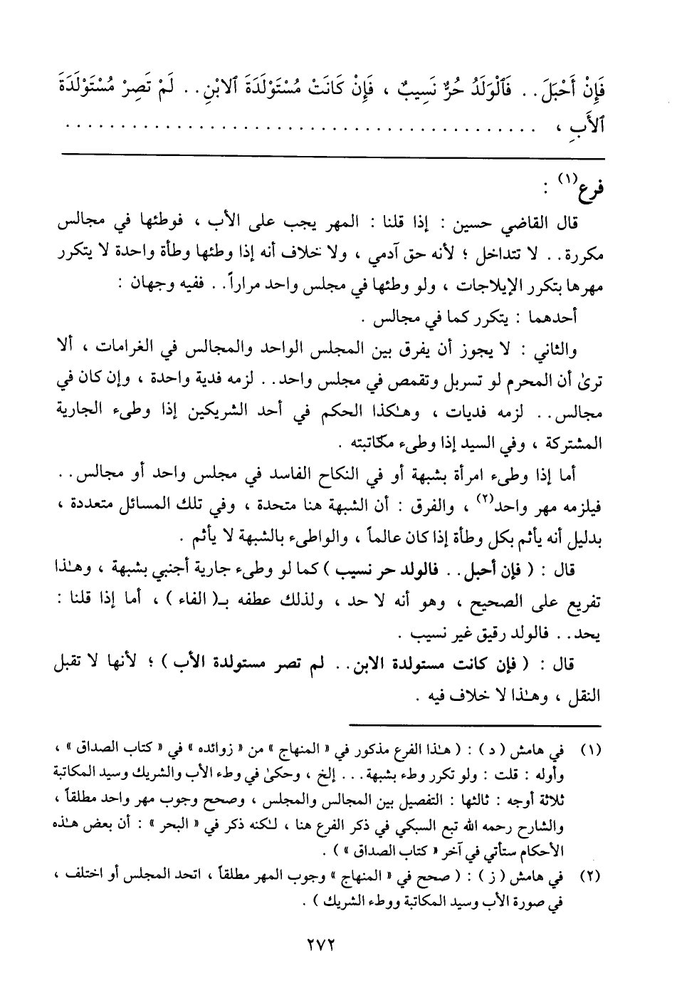 فَإِنْ أَحْبَلَ .. فَالْوَلَدُ حُرٌّ نَسِيبٌ، فّإِنْ كَانَتْ مُسْتَوْلَدَةَ الابْنِ .. لَمْ تَصِرْ مُسْتَوْلَدَةَ الأَبِ