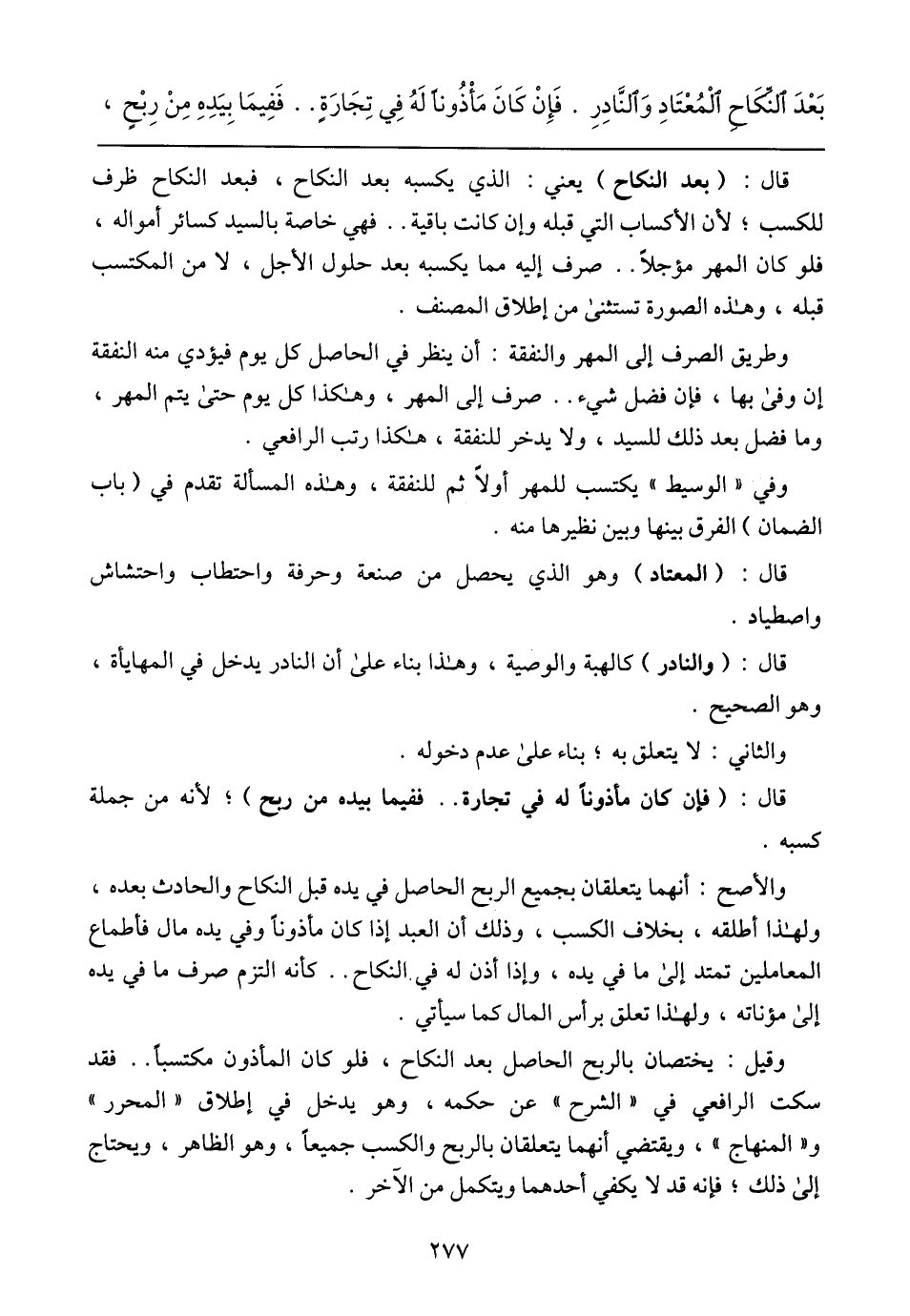 وقيل: يختصان بالربح الحاصل بعد النكاح، فلو كان المأذون مكتسبًا .. فقد سكت الرافعي في (الشرح) عن حكمه، وهو يدخل في إطلاق (المحرر) و (المنهاج)، ويقتضي أنهما يتعلقان بالربح والكسب جميعًا، وهو الظاهر، ويحتاج إلى ذلك؛ فإنه قد لا يكفي أحدهما ويتكمل من الآخر.