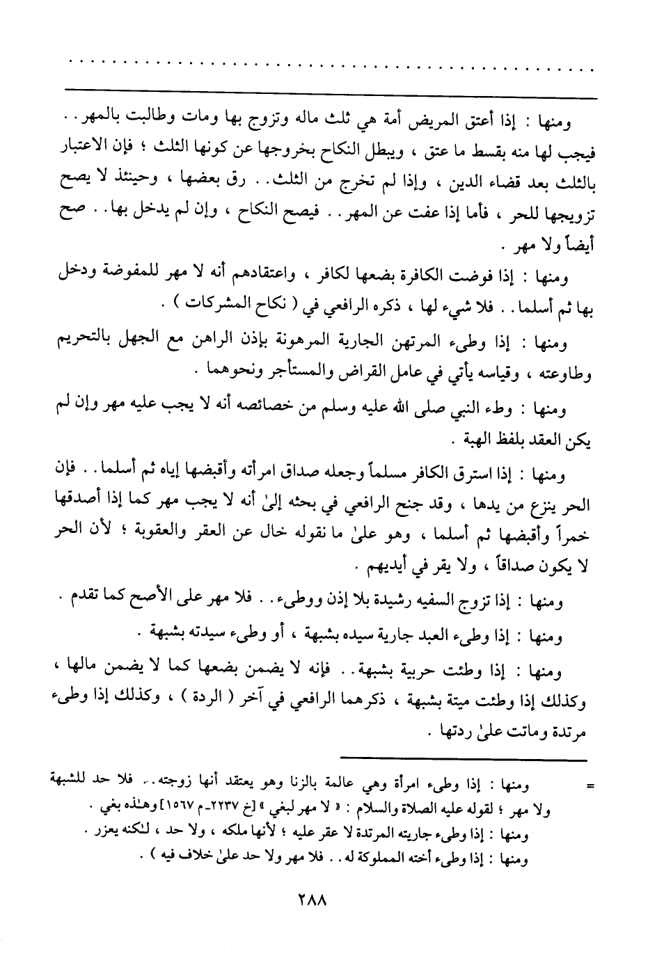 ومنها: إذا استرق الكافر مسلمًا وجعله صداق امرأته وأقبضها إياه ثم أسلما .. فإن الحر ينزع من يدها، وقد جنح الرافعي في بحثه إلى أنه لا يجب مهر كما إذا أصدقها خمرًا وأقبضها ثم أسلما، وهو على ما نقوله خال عن العقر والعقوبة؛ لأن الحر لا يكون صداقًا، ولا يقر في أيديهم.