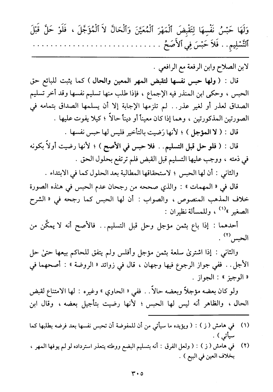 قال: (فلو حل قبل التسليم .. فلا حبس في الأصح)؛ لأنها رضيت أولاً بكونه في ذمته، ووجب عليها التسليم قبل القبض فلم ترتفع بحلول الحق.