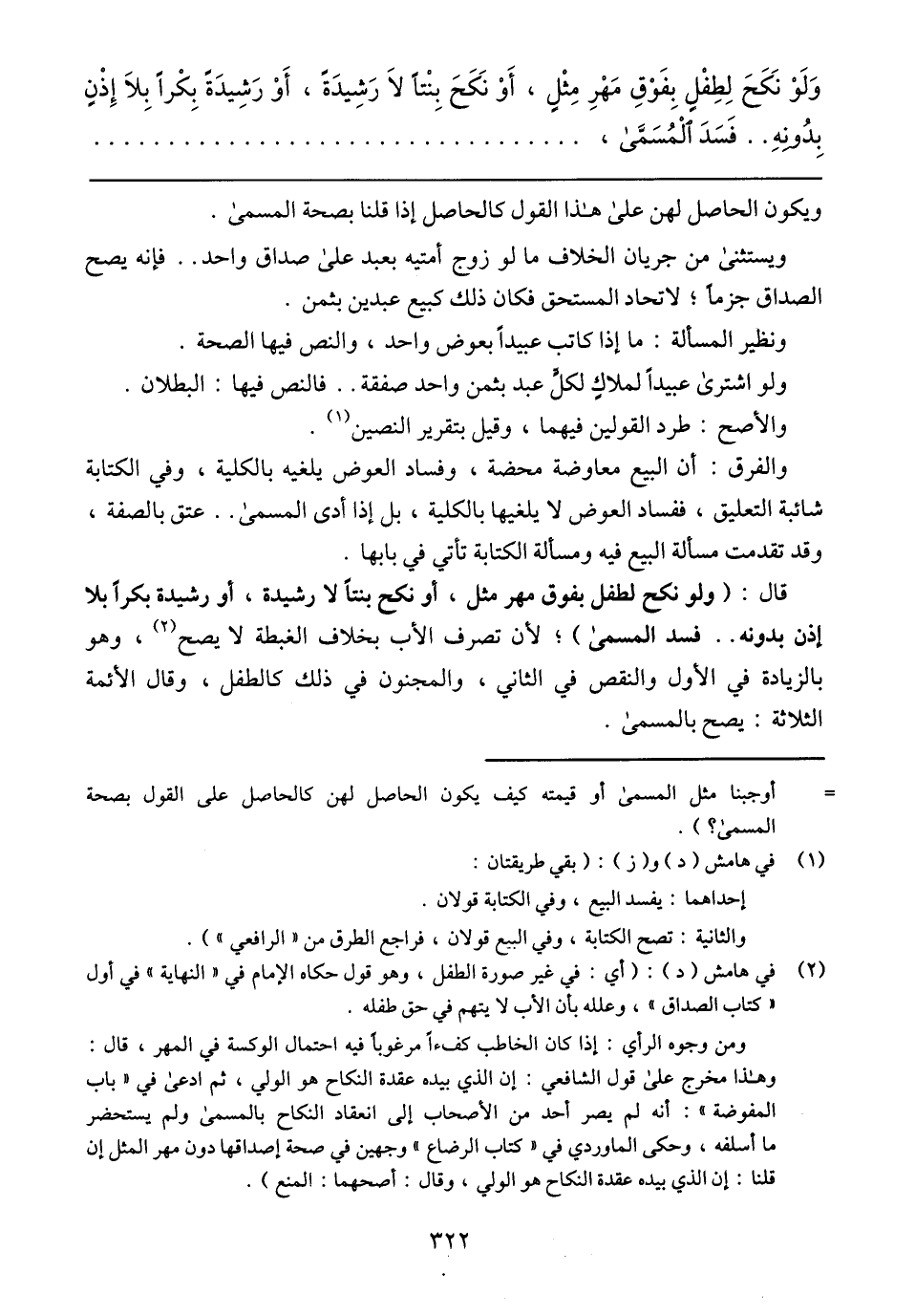 وَلَوْ نَكَحَ لِطِفْلٍ بِفَوْقَ مَهْرِ مِثْلٍ، أَوْ نَكَحَ بِنْتًا لاَ رَشِيدَةً، أَوْ رَشِيدَةً بِكْرًا بِلاَ إِذْنٍ بِدْوِنِه .. فَسَدَ اَلْمُسَمَّىَ،