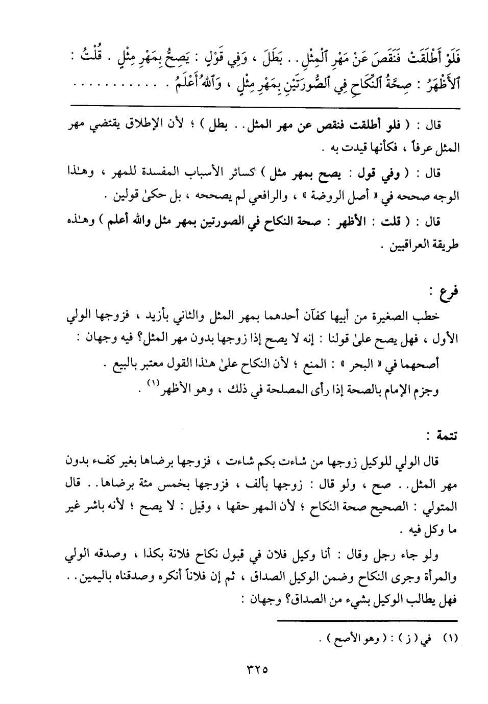 فَلَوْ أَطْلَقَتَ فَنَقَصَ عَنْ مَهْرِ اَلْمِثْلِ .. بَطَلَ، وَفِي قَولٍ: يَصحُّ بِمَهْرِ مِثْلٍ. قُلْتُ: اَلأَظْهَرُ: صَحَّةُ اَلْنِّكَاحِ فِي الصُّورَتَينِ بِمَهْرِ مِثْلٍ، وَالله أَعْلَمُ