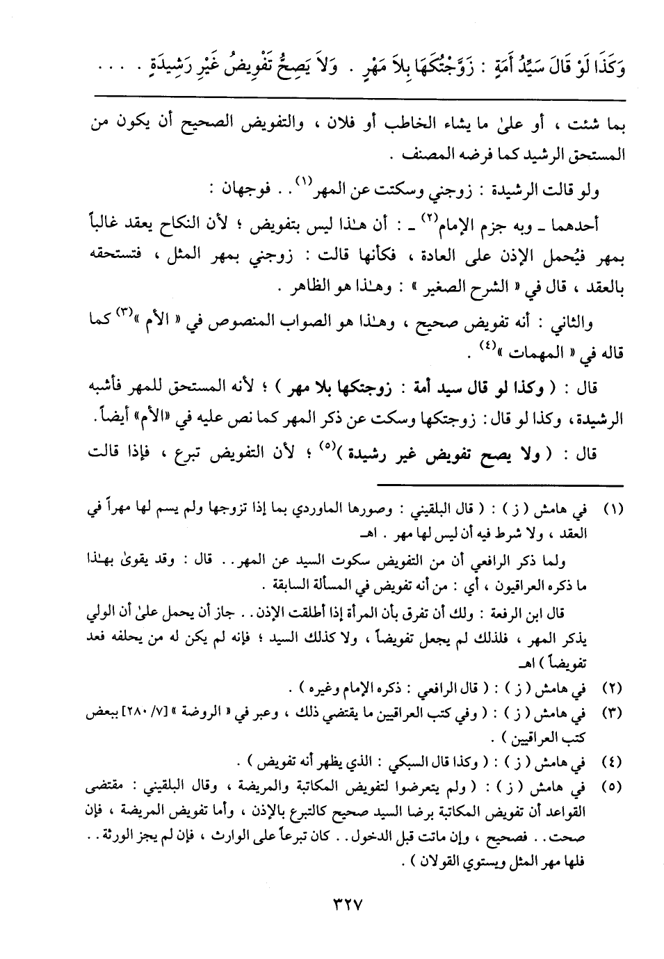 وَكَذَا لَوْ قَالَ سَيِّدُ أَمَةٍ: زَوَّجْتُكَهَا بِلاَ مَهْرٍ. وَلاَ يَصِحُّ تَفْوِيضُ غَيْرِ رَشِيدَةٍ