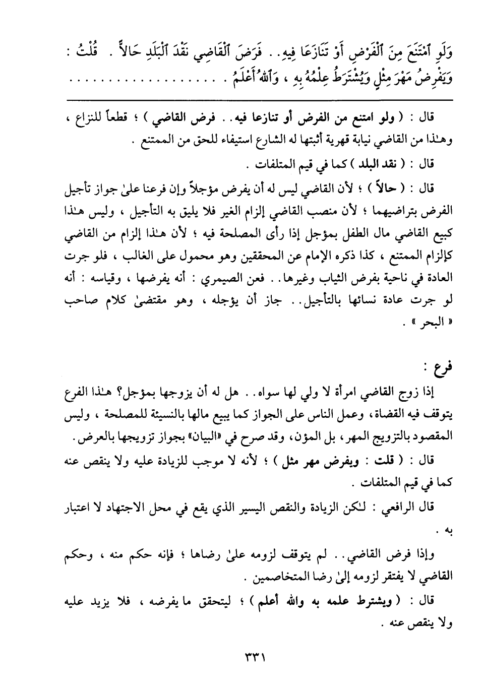 وإذا فرض القاضي .. لم يتوقف لزومه على رضاها؛ فإنه حكم منه، وحكم القاضي لا يفتقر لزومه إلى رضا المتخاصمين.