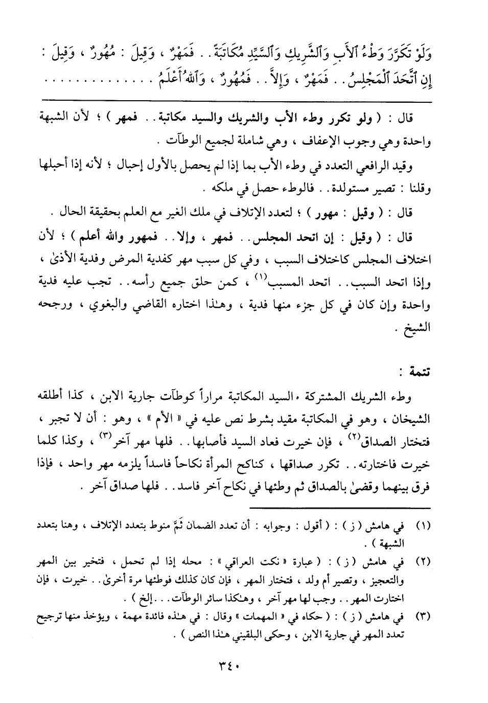 وَلَوْ تَكَرَّرَ وَطْءُ اَلأَبِ وَاَلشِّريكِ وَالسَّيٌدِ مُكَاتَبَةَّ .. فَمَهْرٌ، وَقِيلَ: مُهُورٌ، وَقِيلَ: إِنِ أَتَّحَدَ اَلْمَجْلِسُ .. فَمَهْرٌ، وَإِلاَّ .. فَمُهُورٌ، وَاَلله أَعْلَمُ
