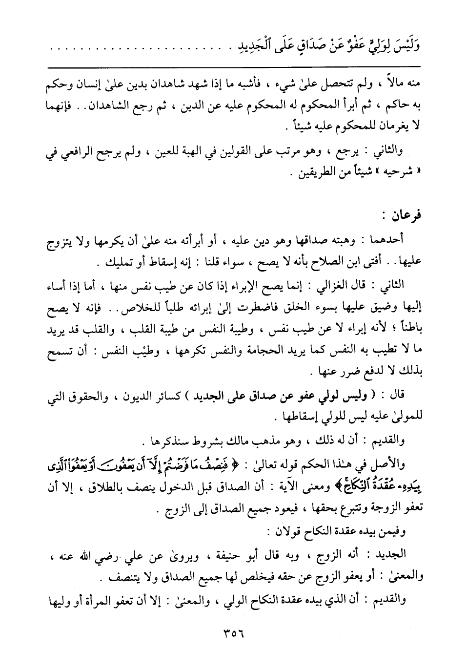 وَلَيْسَ لِوَلىِّ عَفْوٌ عَنْ صَدَاقٍ عَلَى اَلْجَدِيدِ