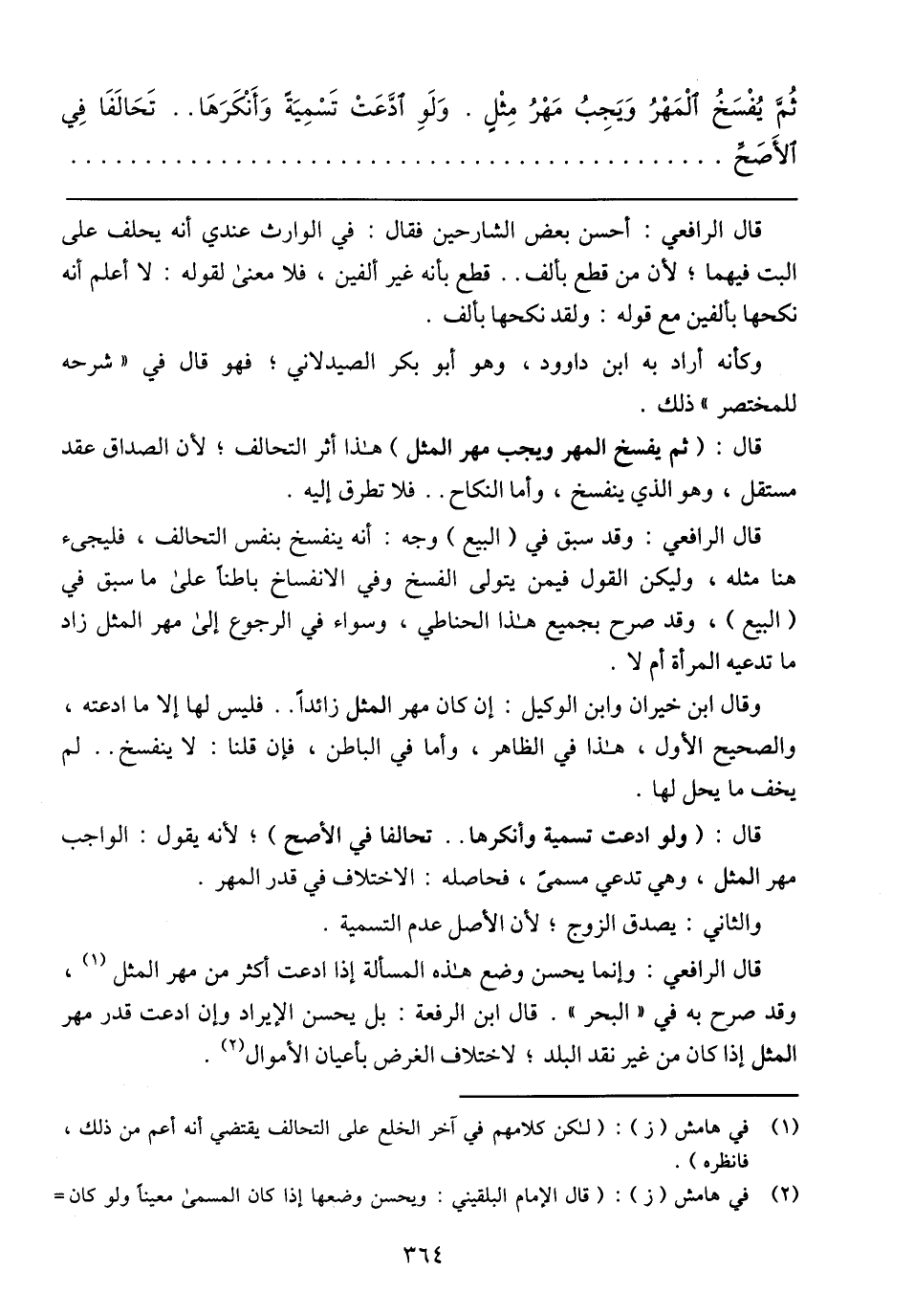 قال الرافعي: أحسن بعض الشارحين فقال: في الوارث عندي أنه يحلف على البت فيهما؛ لأن من قطع بألف .. قطع بأنه غير ألفين، فلا معنى لقوله: لا أعلم أنه نكحها بألفين مع قوله: ولقد نكحها بألف.