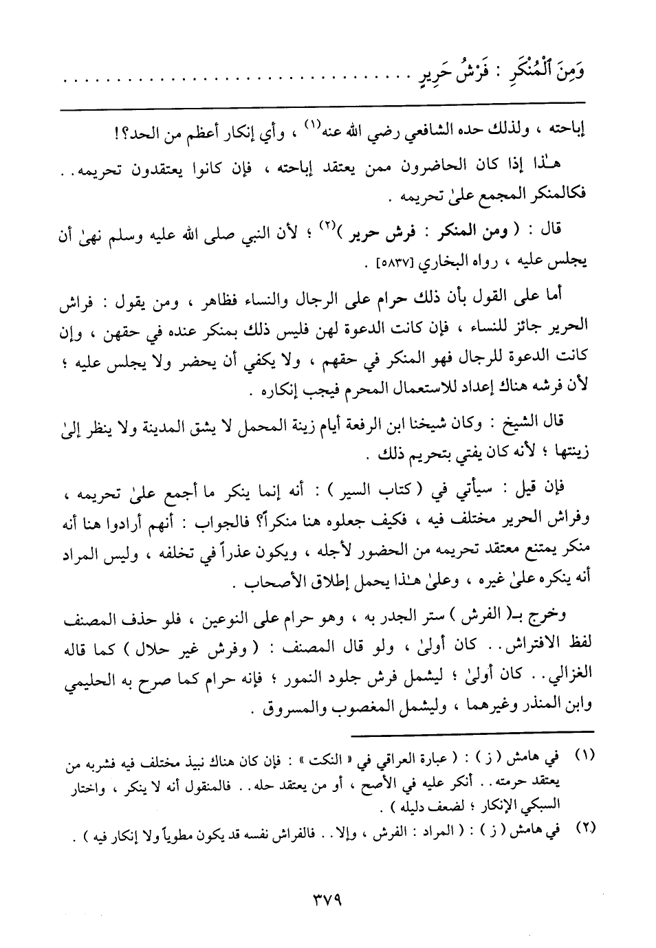 وَمِنَ اَلْمُنْكَرِ: فَرْشُ حَرِيرٍ
