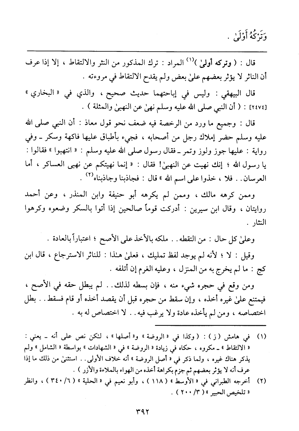قال: (وتركه أولى) المراد: ترك المذكور من النثر والالتقاط، إلا إذا عرف أن الناثر لا يؤثر بعضهم على بعض ولم يقدح الالتقاط في مروءته.
