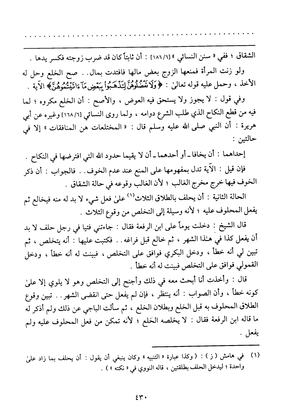 قال: وأخذت أنا أبحث معه في ذلك وأجنح إلى التخلص وهو لا يلوي إلا على كونه خطأ، وأن الصواب: أنه ينتظر، فإن لم يفعل حتى انقضى الشهر .. تبين وقوع الطلاق المحلوف به قبل الخلع وبطلان الخلع، ثم سألت الباجي عن ذلك ولم أذكر له ما قاله ابن الرافعة فقال: لا يخلصه الخلع؛ لأنه تمكن من فعل المحلوف عليه ولم يفعل.