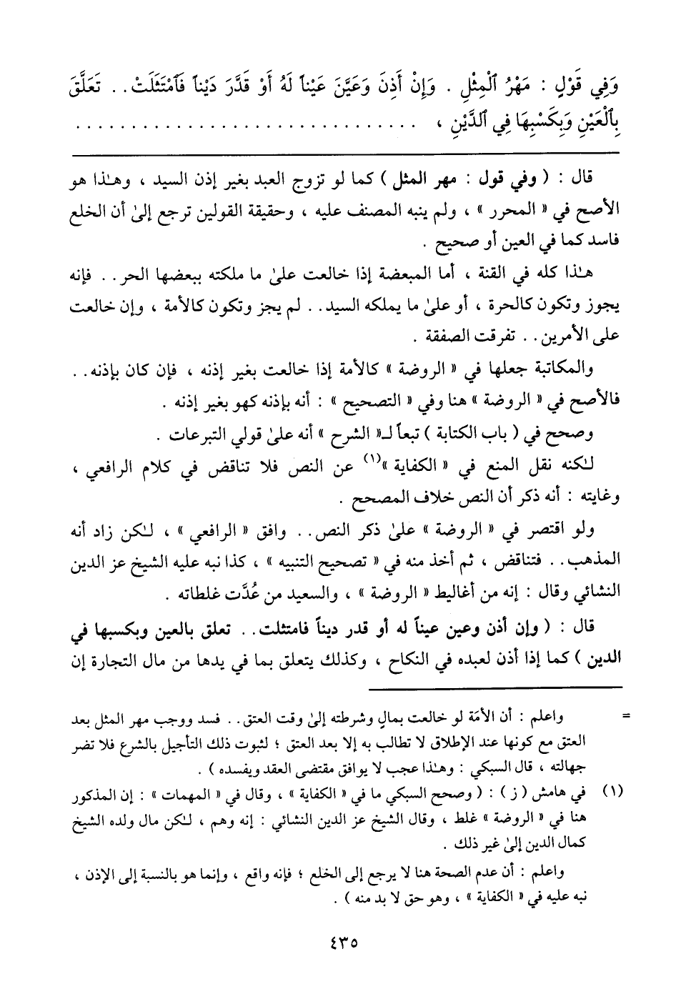 ولو اقتصر في (الروضة) على ذكر النص .. وافق (الرافعي)، لكن زاد أنه المذهب .. فتناقض، ثم أخذ منه في (تصحيح التنبيه)، كذا نبه عليه الشيخ عز الدين النشائي وقال: إنه من أغاليط (الروضة)، والسعيد من عدت غلطاته.