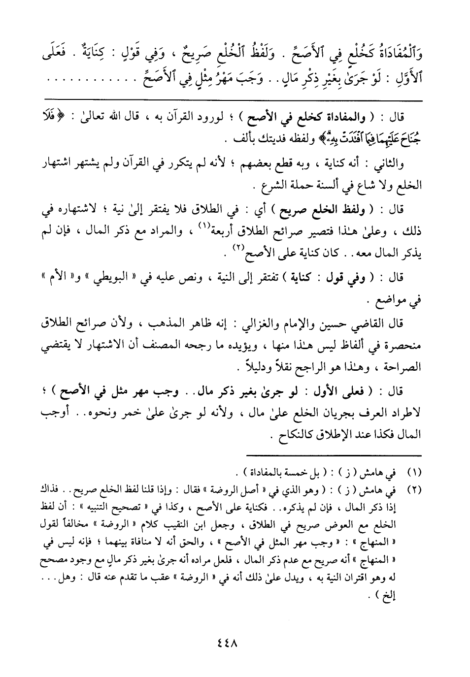 والثاني: أنه كناية، وبه قطع بعضهم؛ لأنه لم يتكرر في القرآن ولم يشتهر اشتهار الخلع ولا شاع في ألسنة حملة الشرع.
