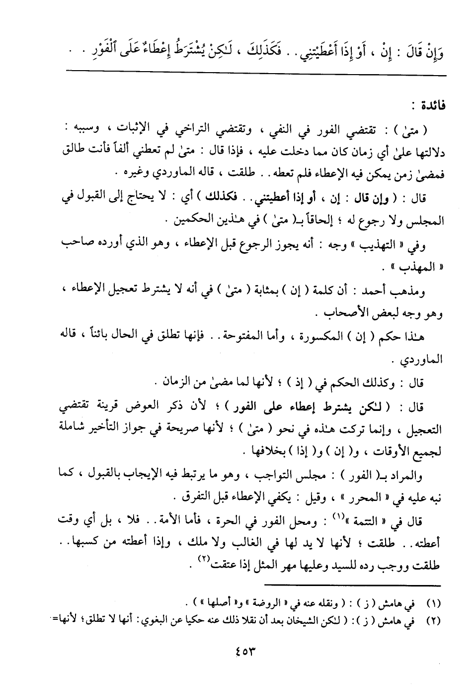 ومذهب أحمد: أن كلمة (إن) بمثابة (متى) في أنه لا يشترط تعجيل الإعطاء، وهو وجه لبعض الأصحاب.
